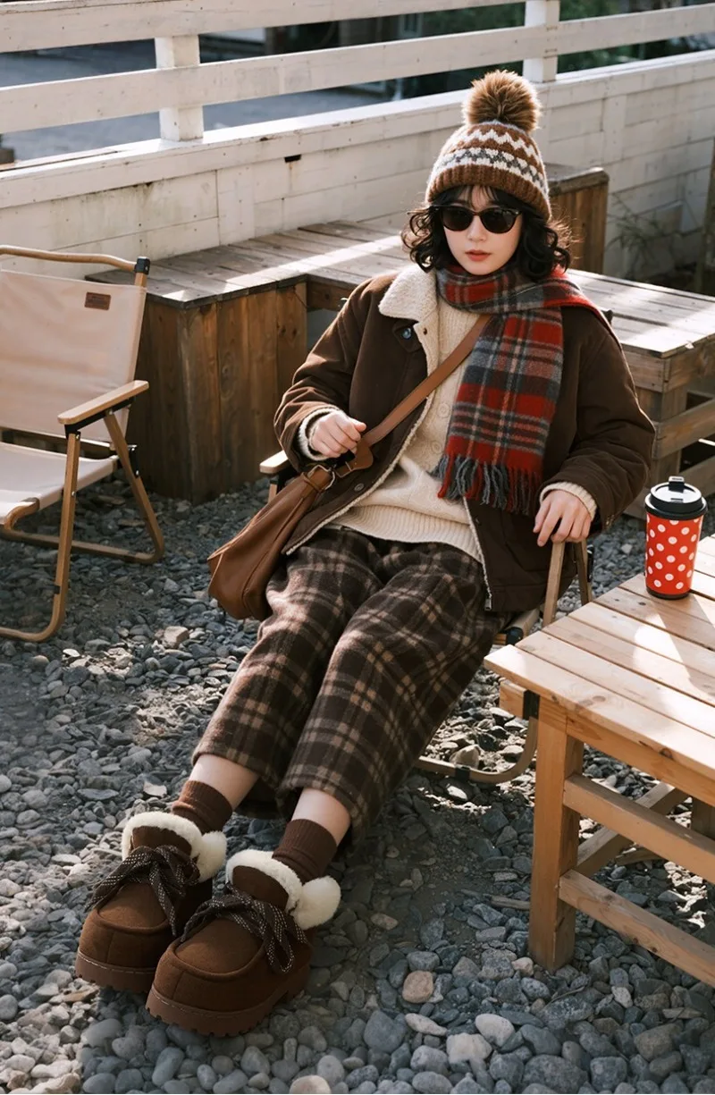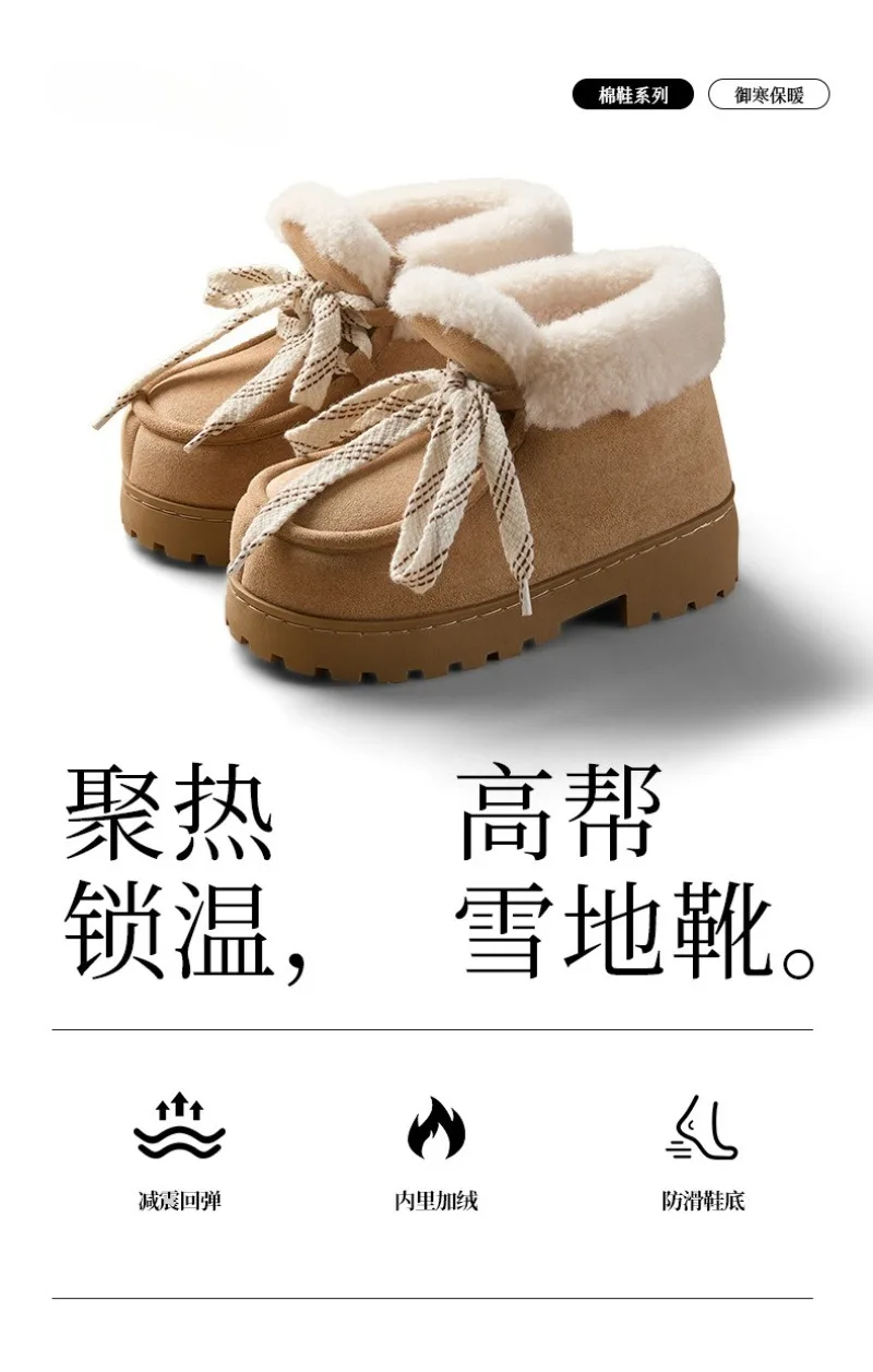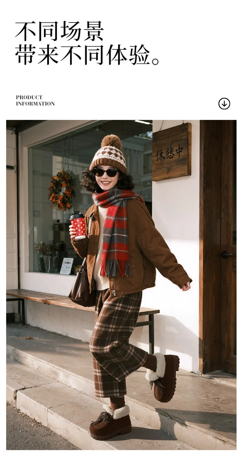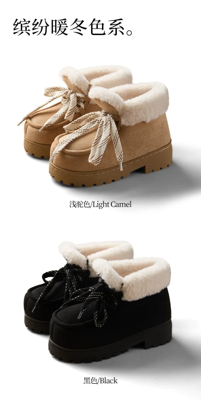 Stivaletti invernali caldi e soffici con lacci per donna Stivali con plateau in pelle scamosciata sintetica marrone retrò Comfort Stivali da neve con tacco grosso antiscivolo