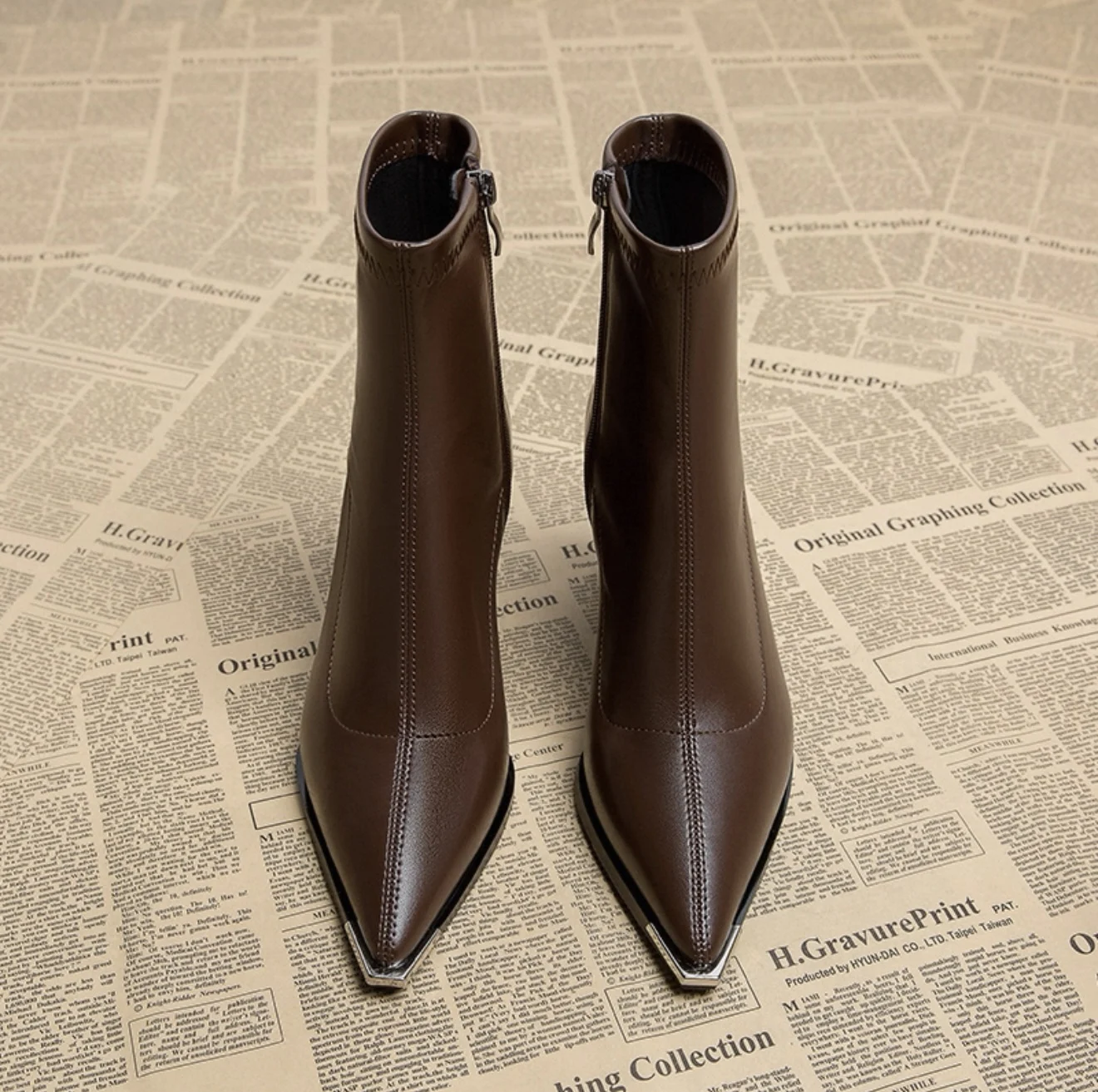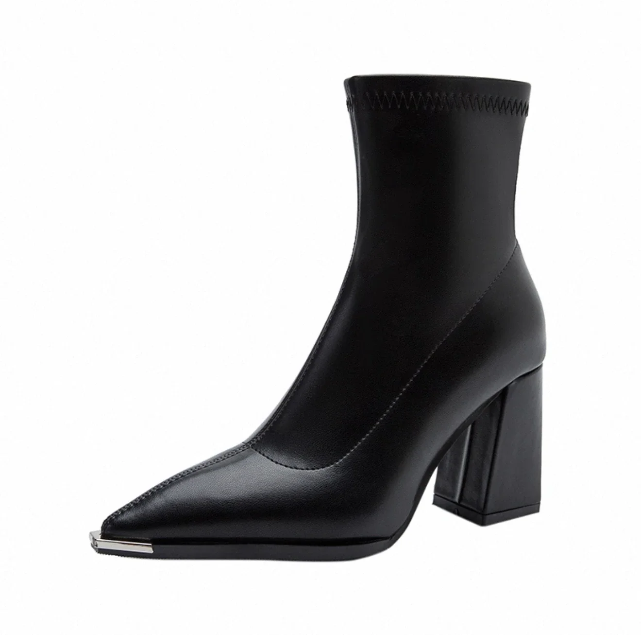 Stivaletti versatili da donna con tacco grosso e punta in pelle, nuovo stile, tacchi alti di grandi dimensioni, moda autunno e inverno