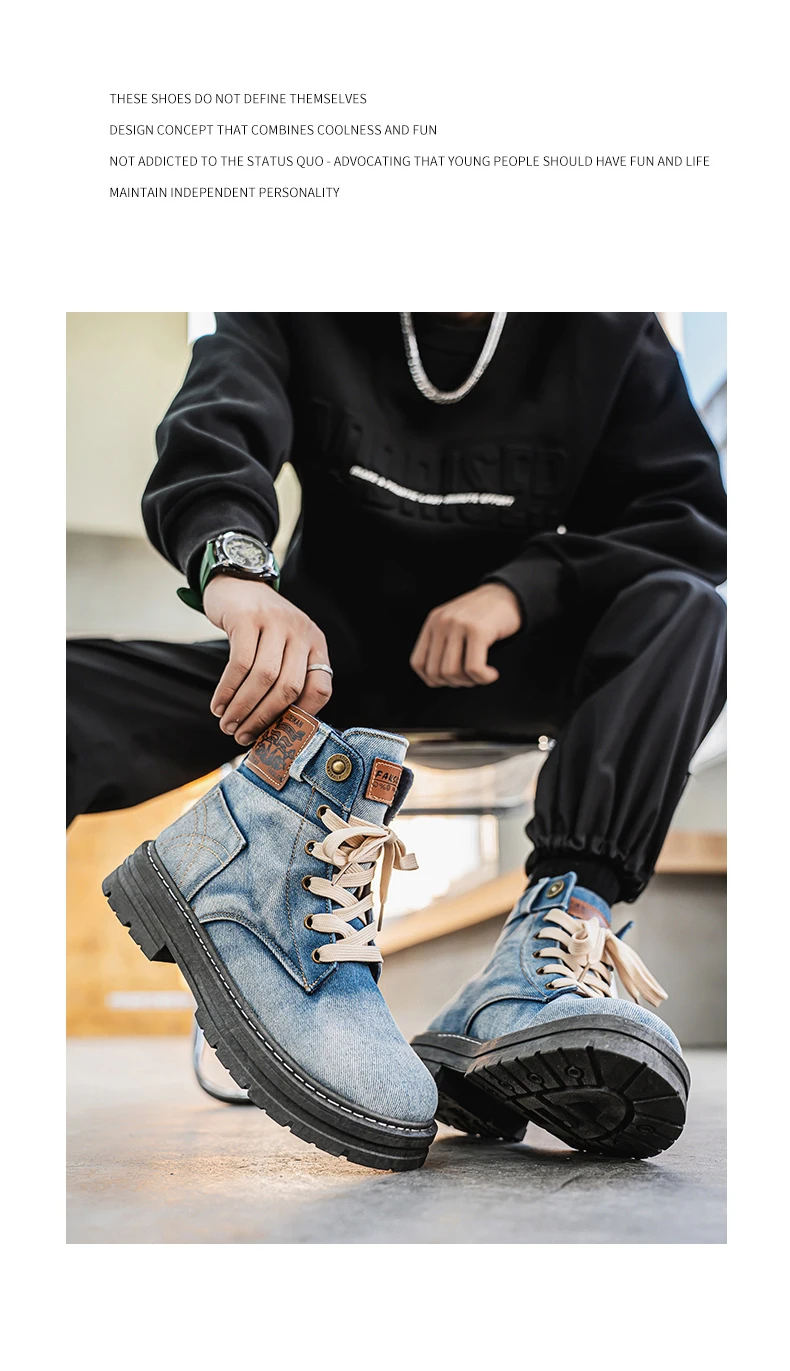 Stivali alti in denim da uomo, scarpe sportive casual, stivali da uomo alla moda e alla moda