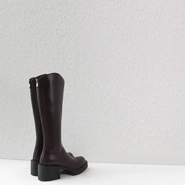 Stivali alti sopra il ginocchio con tacco spesso marrone Stivali da donna con punta tonda con fondo in gomma alla moda stile cavaliere sottile primavera autunno 1Stivali alti sopra il ginocchio con tacco spesso marrone Stivali da donna con punta tonda con fondo in gomma alla moda stile cavaliere sottile primavera autunno
