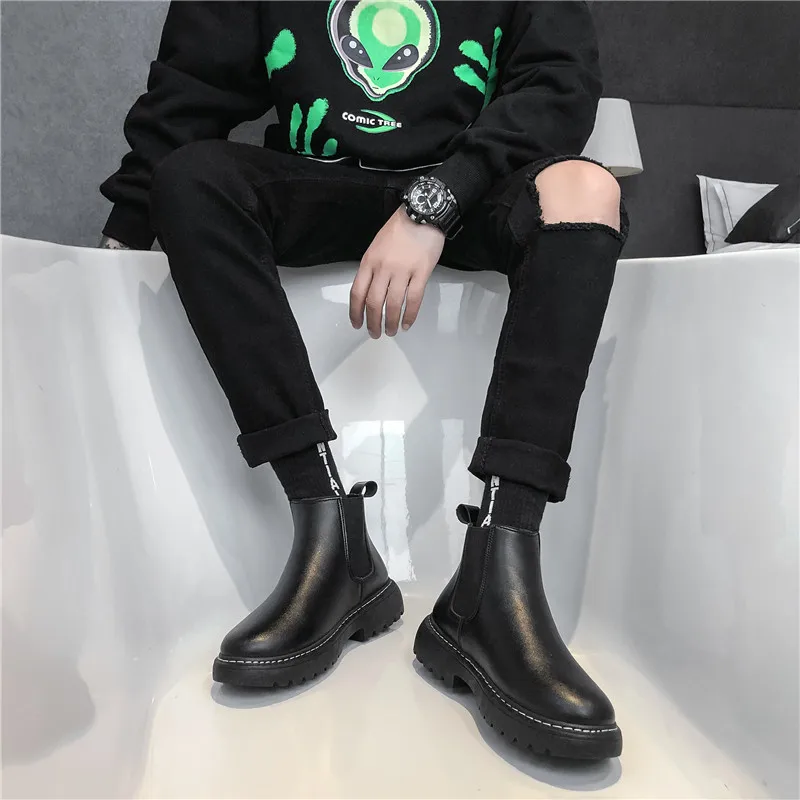 Stivali Chelsea da uomo in pelle fatti a mano con lati elastici Scarpe eleganti casual da lavoro Suola antiscivolo Calzature nere comode