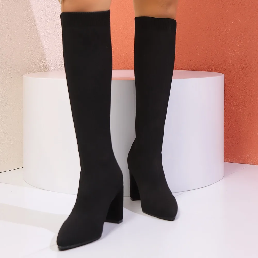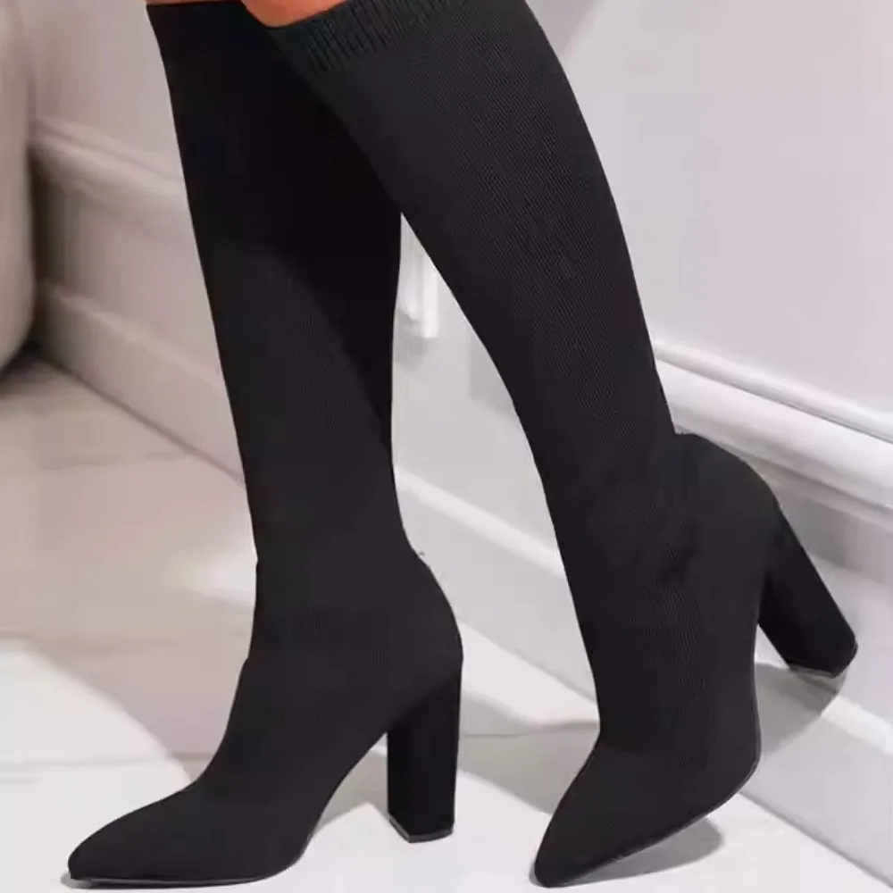 Stivali con tacco alto al ginocchio Calza autunno/inverno Stivali lunghi da donna eleganti ed comodi con punta a punta nera per donna