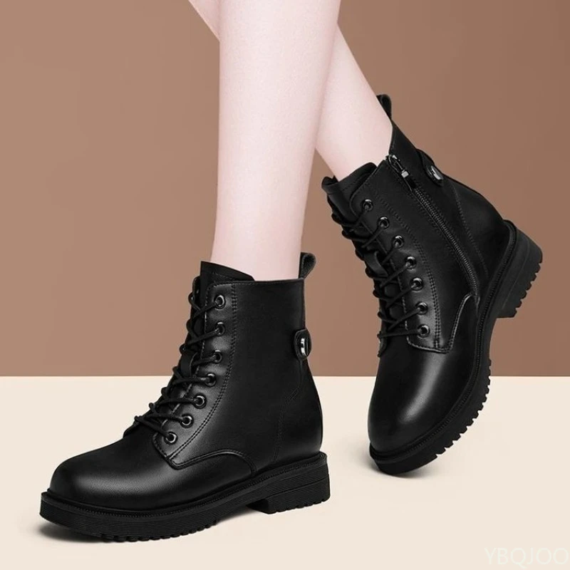 Stivali corti caldi con suola spessa nera autunno e inverno di piccole dimensioni con stivali da moto versatili antiscivolo antivento in pile