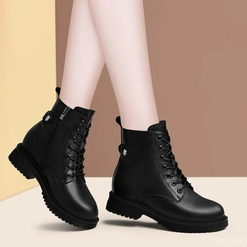 Stivali corti caldi con suola spessa nera autunno e inverno di piccole dimensioni con stivali da moto versatili antiscivolo antivento in pile