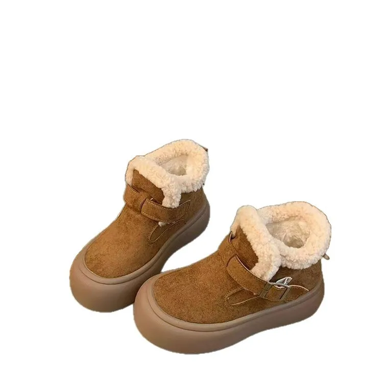 Stivali corti da neve con suola spessa Velluto invernale per bambini addensato caldo 2025 nuove scarpe da neve in cotone Birkenstocks