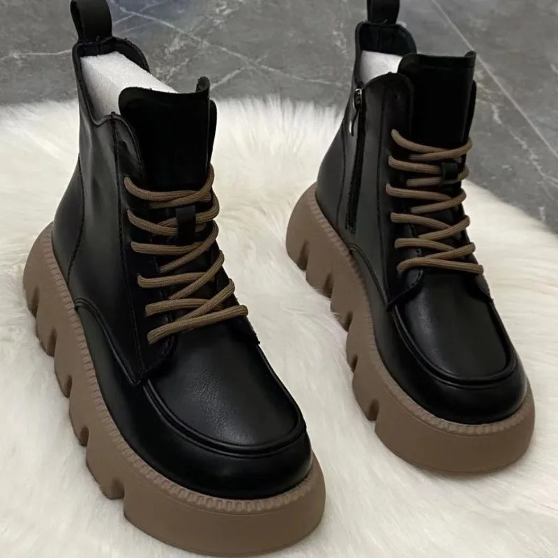 Stivali corti versatili retrò da donna 2023 Autunno Inverno Nuovo stile britannico Suola spessa Stivali corti elevati Suola vulcanizzata