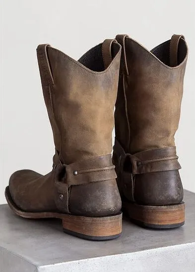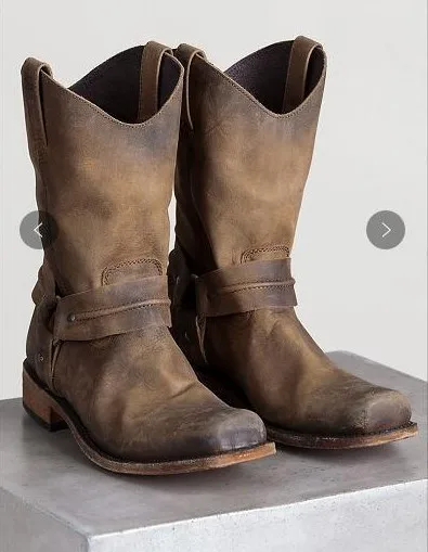 Stivali da cowboy retrò Donna Uomo Stivali da esterno a metà polpaccio Scarpe slip on vintage in PU Stivaletti gladiatore invernali Stivali lunghi marroni unisex