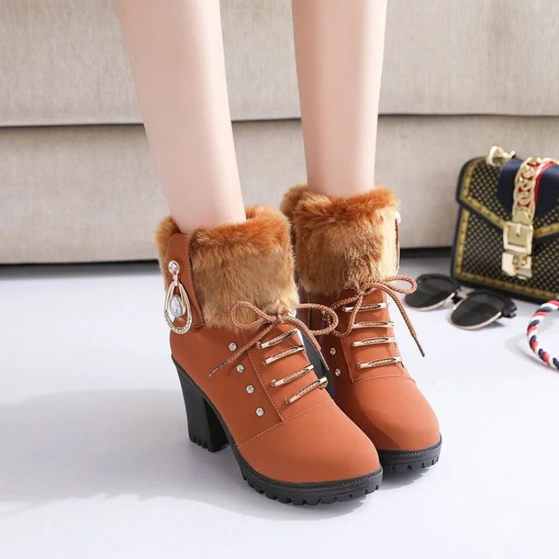 Stivali da donna in pelle scamosciata tacchi alti firmati invernali scarpe da donna comodi stivali corti con plateau in peluche scarpe eleganti alla caviglia per le donne
