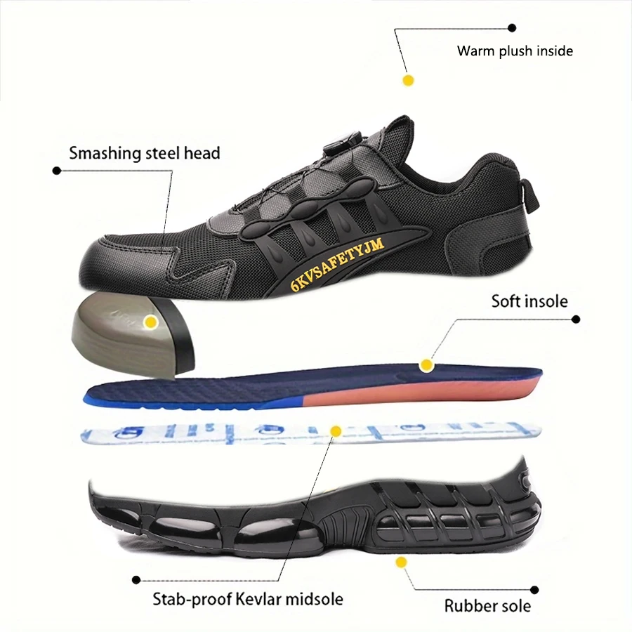 Intersuola in Kevlar Antiforatura: le scarpe con punta in acciaio sono realizzate in Kevlar, che sono un materiale protettivo in fibra.Può proteggere i piedi da essere appuntiti con oggetti taglienti come chiodi, barra d’acciaio.