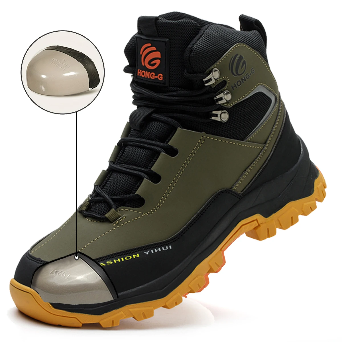 Stivali da lavoro impermeabili con punta in acciaio da uomo, anti-sfondamento, anti-perforanti, antiscivolo, scarpe indistruttibili, stivali antinfortunistici da esterno maschili