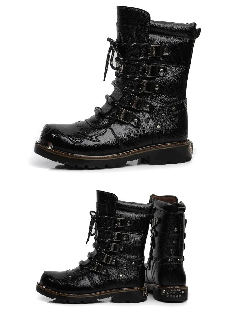 Stivali da moto da uomo invernali nuova moda a metà polpaccio Punk Rock Punk scarpe da uomo in vera pelle nera alta stivali Casual da uomo 38-46