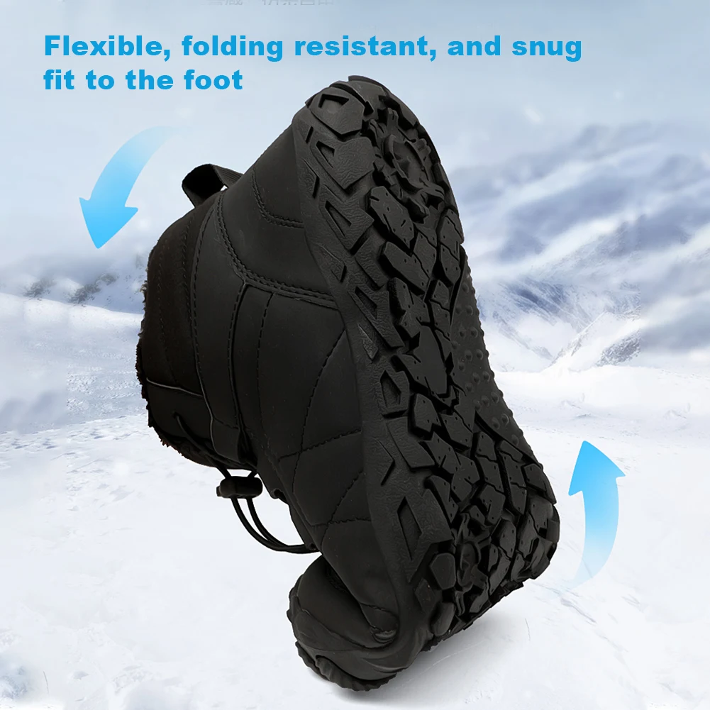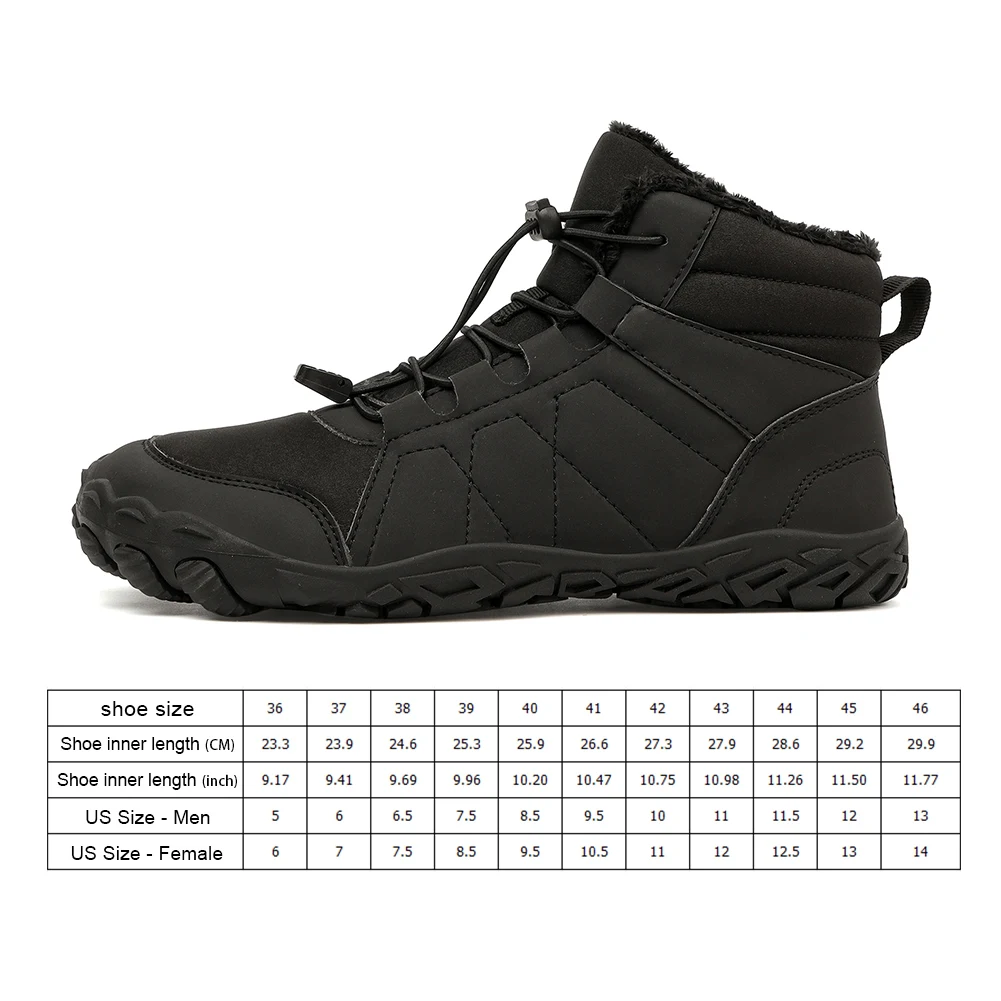 Stivali da neve a piedi nudi Scarpe a piedi nudi alte Antiscivolo Stivaletti invernali casual Scarpe da corsa impermeabili Scarpe termiche per uomo Donna Caratteristiche: 1.Protezione resistente all’acqua:Realizzati con una miscela di tessuto elastico Oxford e pelle sintetica, questi scarponi da neve a piedi nudi offrono un’eccellente resistenza all’acqua.per le giornate piovose o nevose, mantengono i piedi asciutti e comodi impedendo l’ingresso di umidità. 2.Design leggero e flessibile:La struttura complessivamente leggera e flessibile di queste scarpe alte a piedi nudi consente movimenti senza sforzo.Possono essere attorcigliati e piegati senza perdere forma, offrendo un’esperienza d’uso comoda e illimitativa che ti consente di camminare liberamente e facilmente. 3.Interni caldi e accoglienti:Dotate di una morbida fodera in peluche, queste scarpe da trekking per esterni sono progettate per mantenere i tuoi piedi caldi e accoglienti.Il materiale morbido trattiene il calore in modo efficace, garantendo che i tuoi piedi rimangano caldi e comodi anche nelle condizioni più fredde. 4.Resistenza allo scivolamento migliorata:La suola in gomma con motivo tridimensionale strutturato migliora la resistenza allo scivolamento.Questo design offre trazione e stabilità solide, rendendo questi stivaletti minimalisti ideali per camminare in sicurezza su superfici bagnate o innevate. 5.Comoda chiusura con serratura elastica:Il morbido sistema di chiusura elastica delle scarpe a piedi nudi consente di indossarle e toglierle facilmente.Puoi regolare la tenuta in base alle tue preferenze, garantendo una vestibilità sicura e confortevole ogni volta che indossi questi stivali. Specifica: Origine: Cina continentale Genere: unisex Materiale della fodera: peluche Suola Materiale: gomma Taglia 36 37 38 39 40 41 42 43 44 45 46 Lunghezza interna (cm) 23,3 23,9 24,6 25,3 25,9 26,6 27,3 27,9 28,6 29.9 Lunghezza interna (pollici) 9,17 9,41 9,69 9,96 10,20 10,47 10,75 11,98 11,26 11,50 11.77 Taglia USA (maschio) 5 6 6,5 7,5 8,5 9,5 10 11,5 12 13 Taglia USA (femmina) 6 7 7.5 8.5 9.5 10.5 11 12 12.5 13 14 Nota: A causa dei diversi monitor e degli effetti della luce, il colore effettivo dell’articolo potrebbe essere leggermente diverso da quello mostrato nelle immagini.Grazie! Si prega di consentire una deviazione di misurazione di 1-2 cm dovuta alla misurazione manuale.