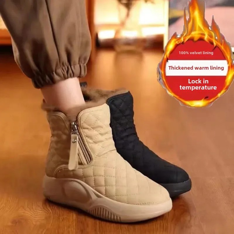 Stivali da neve antiscivolo alti in vera pelle foderati in pile ispessito invernale da donna Scarpe casual in cotone caldo con suola spessa
