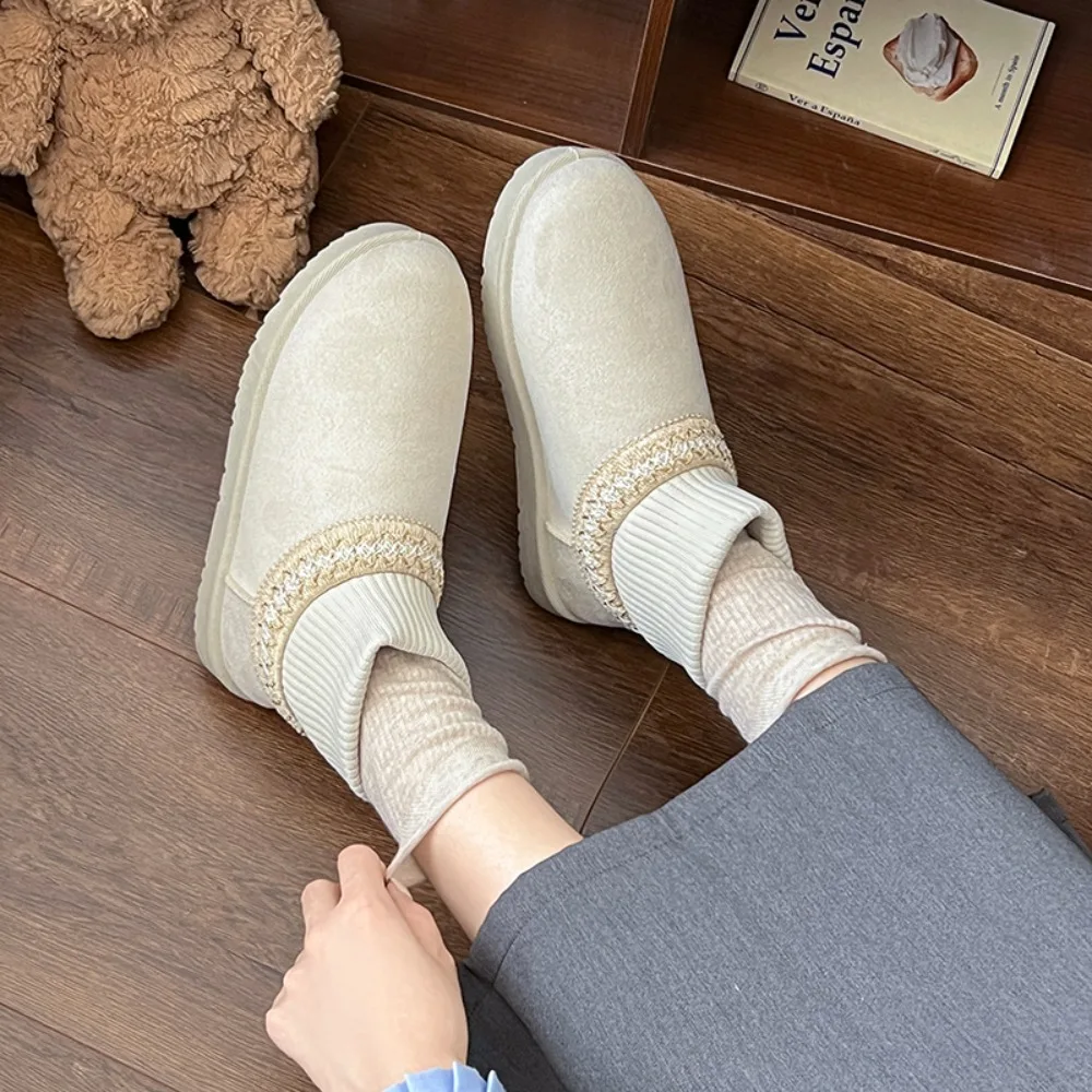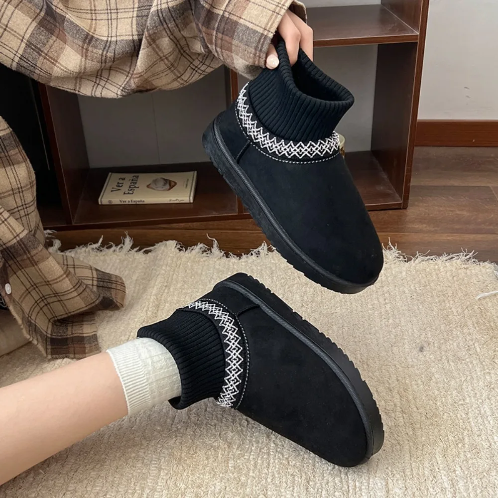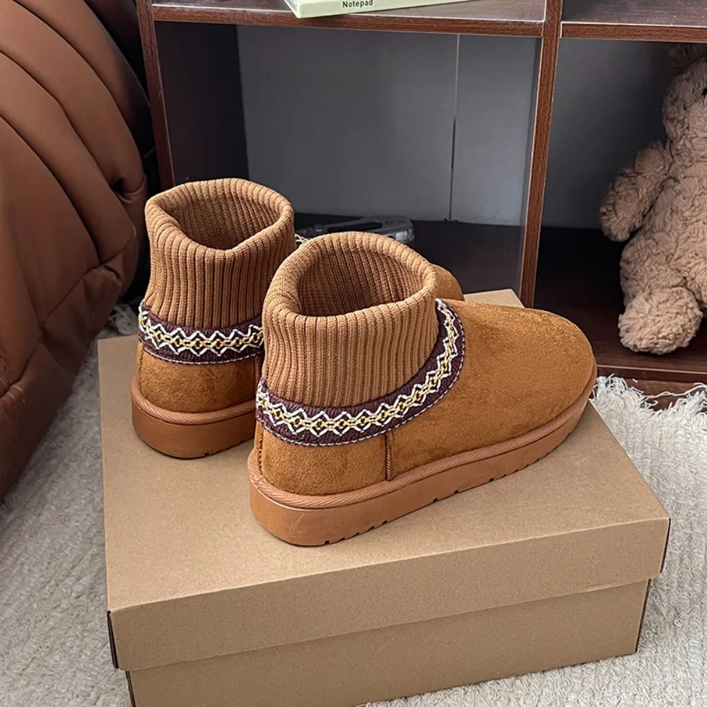 Stivali da neve classici in pelle scamosciata da donna 2025 Stivaletti invernali in morbido cotone con fondo spesso Scarpe calde con decorazione ricamata in peluche