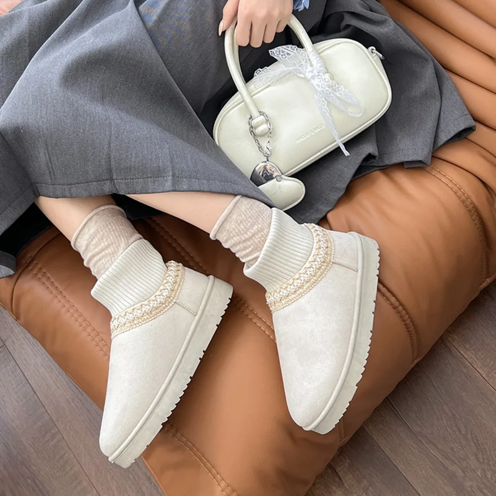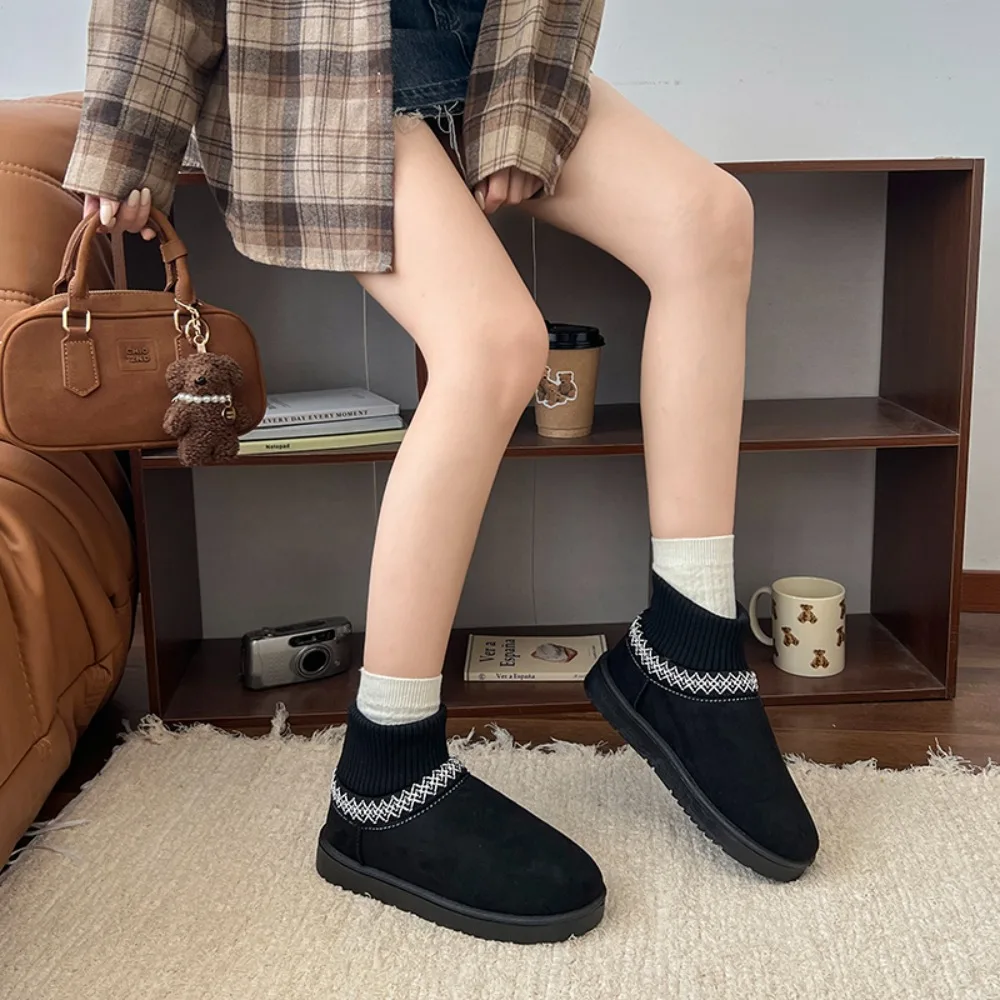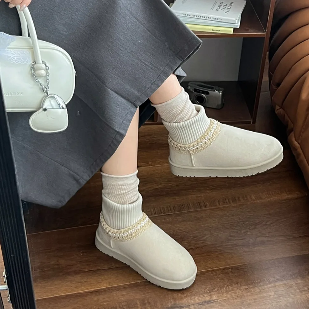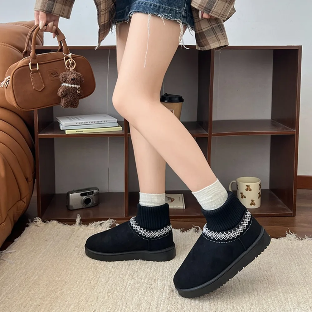 Stivali da neve classici in pelle scamosciata da donna 2025 Stivaletti invernali in morbido cotone con fondo spesso Scarpe calde con decorazione ricamata in peluche