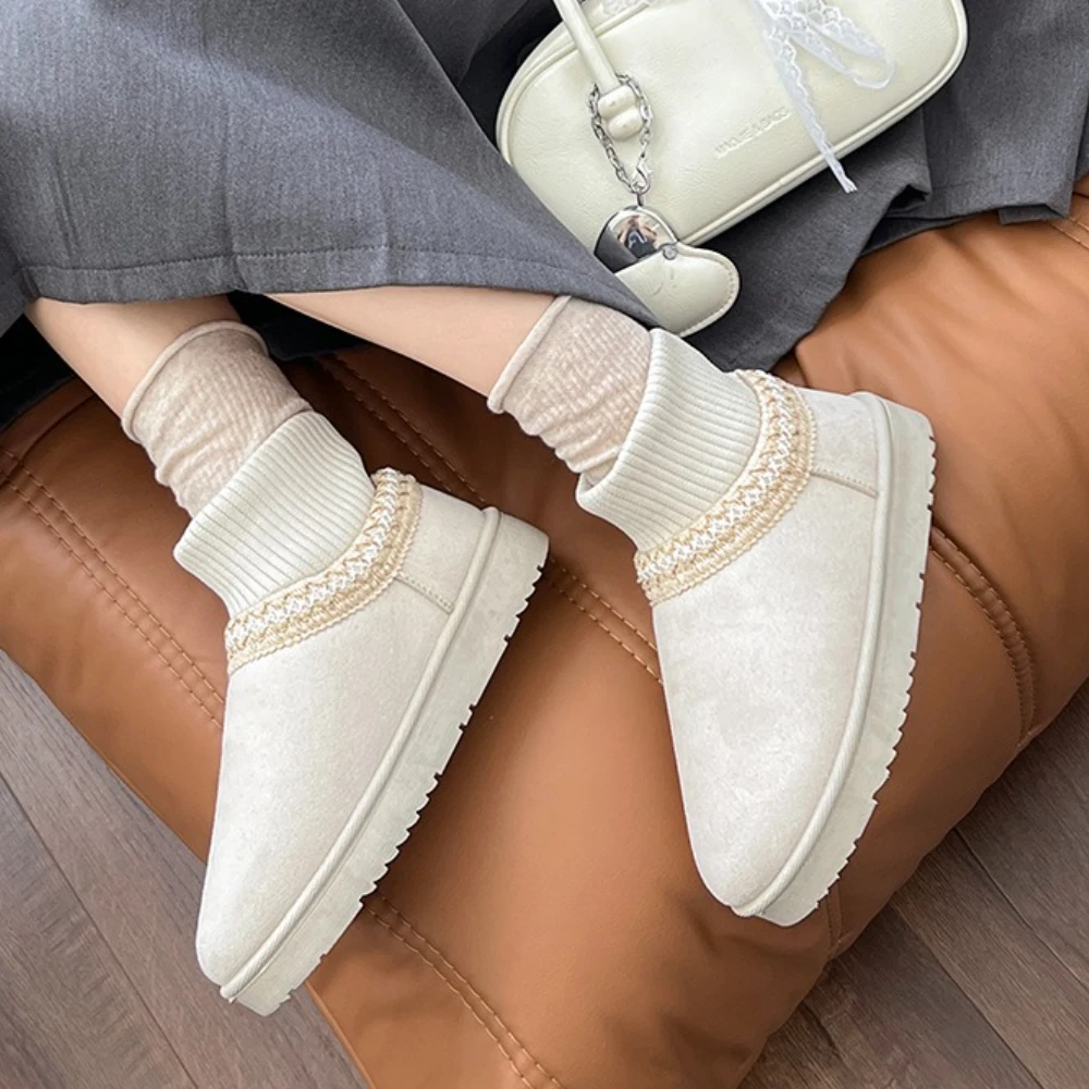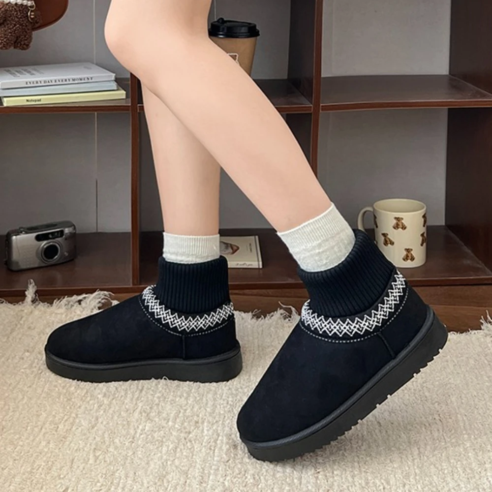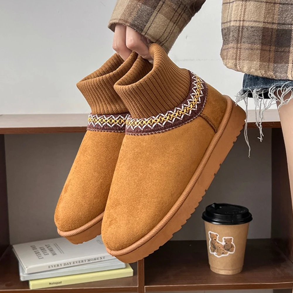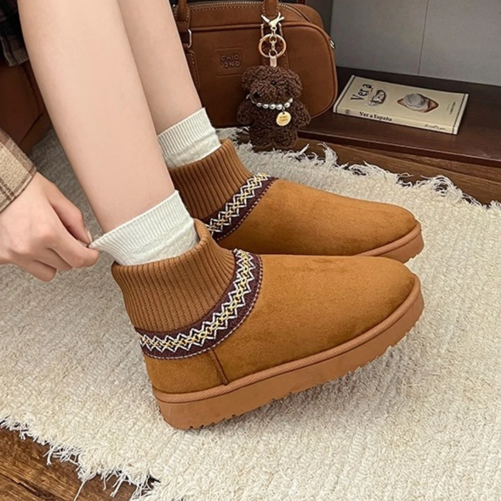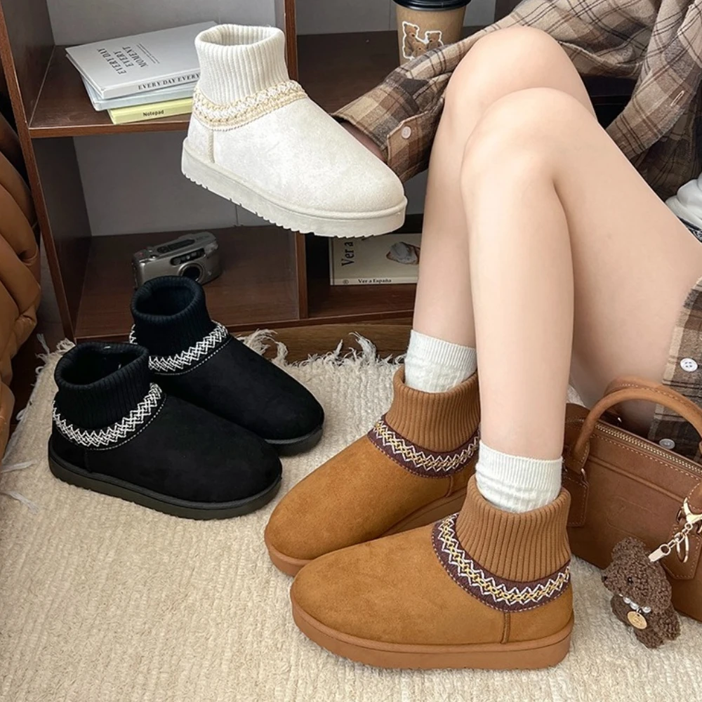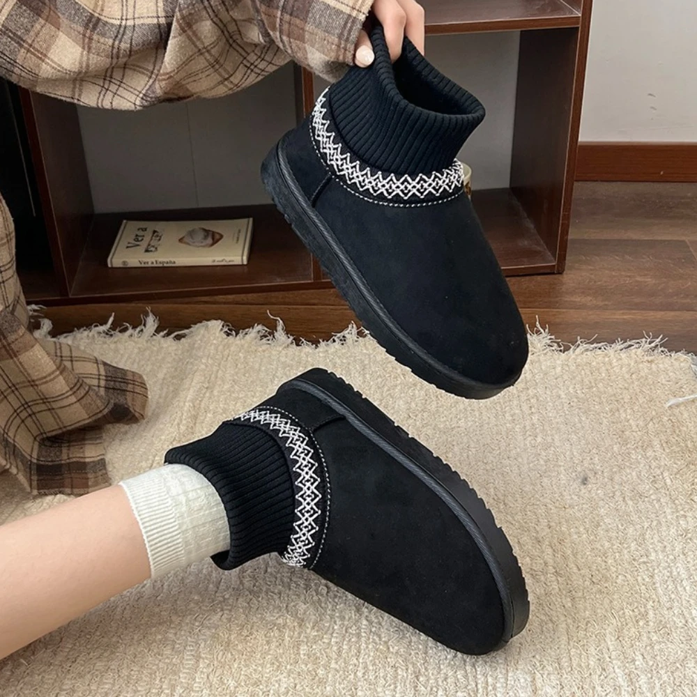 Stivali da neve classici in pelle scamosciata da donna 2025 Stivaletti invernali in morbido cotone con fondo spesso Scarpe calde con decorazione ricamata in peluche