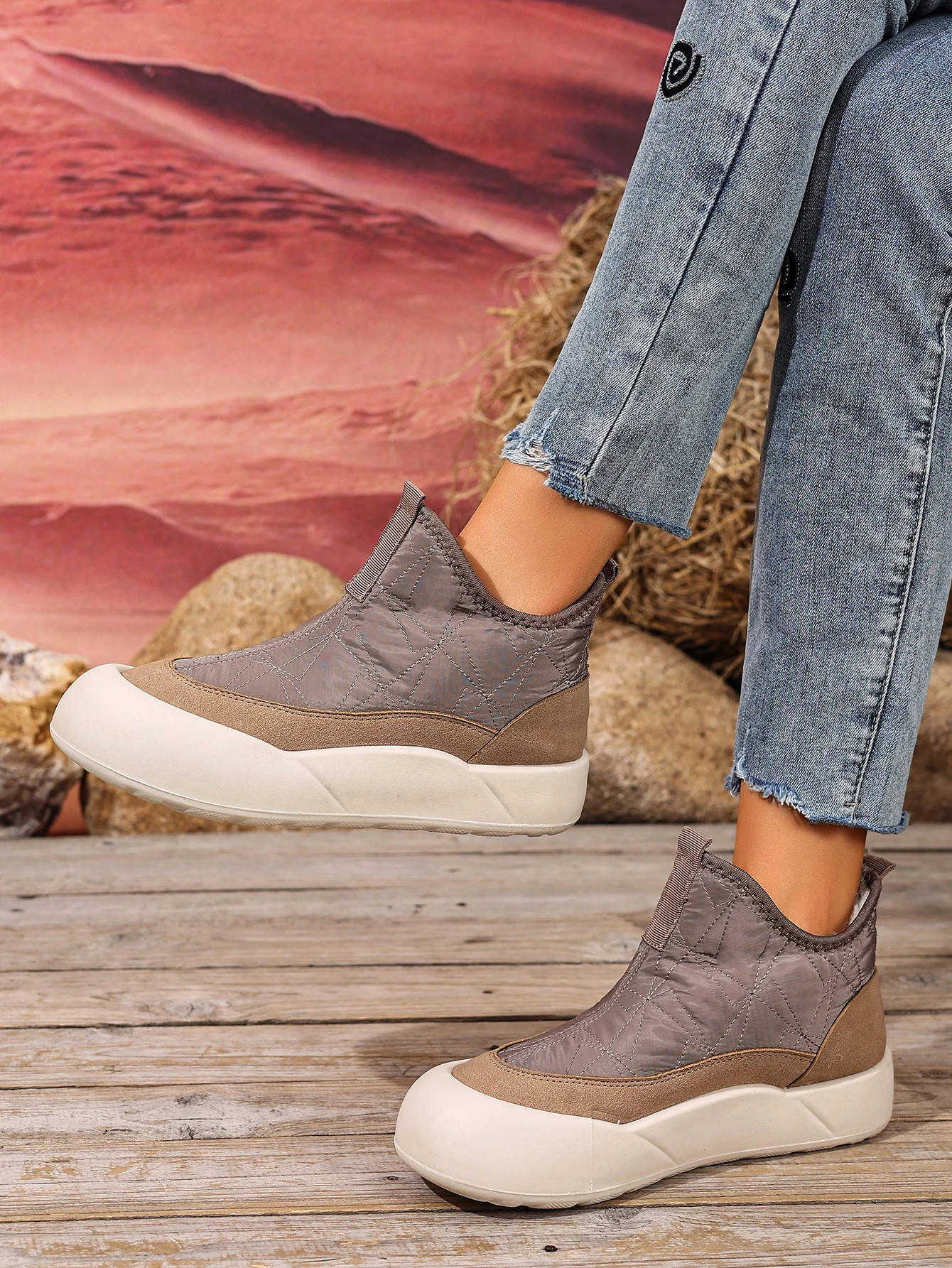Stivali da neve con fondo spesso antiscivolo in piumino Scarpe invernali comode con fondo morbido casual foderate in pile da donna