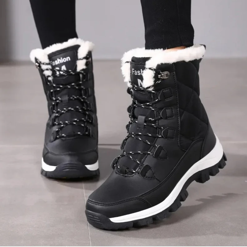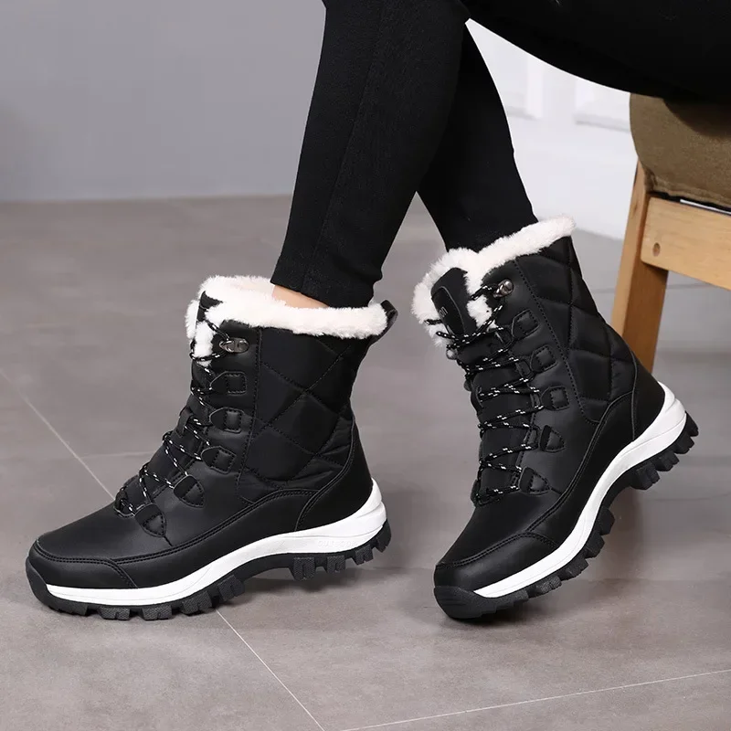 Stivali da neve da donna Comodi stivali caldi Scarpe con plateau impermeabili Scarpe basse casual in peluche Scarpe da ginnastica da donna invernali alla moda
