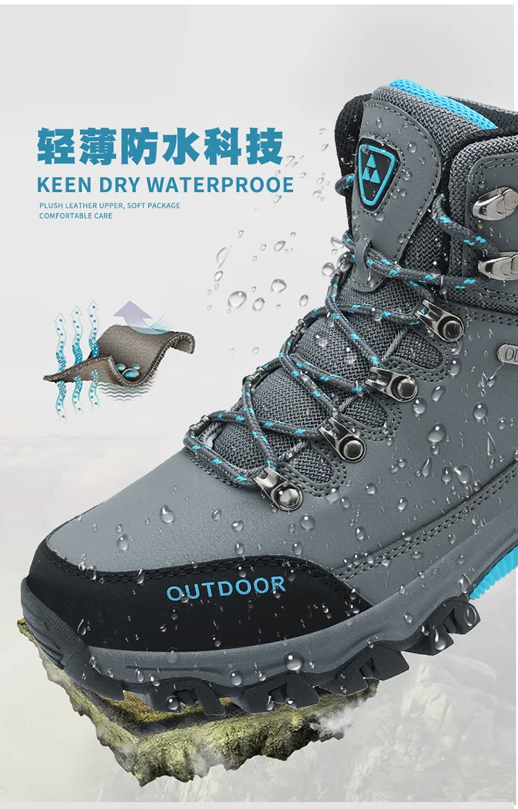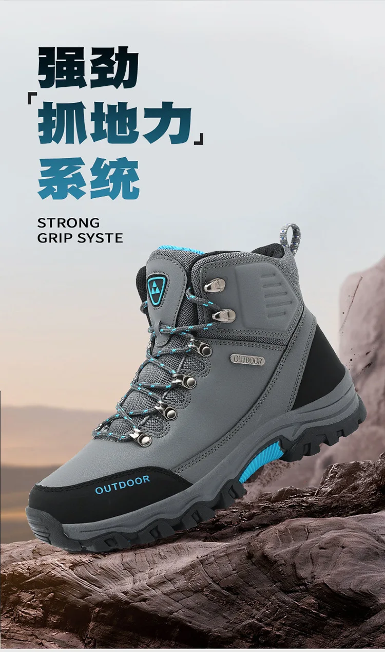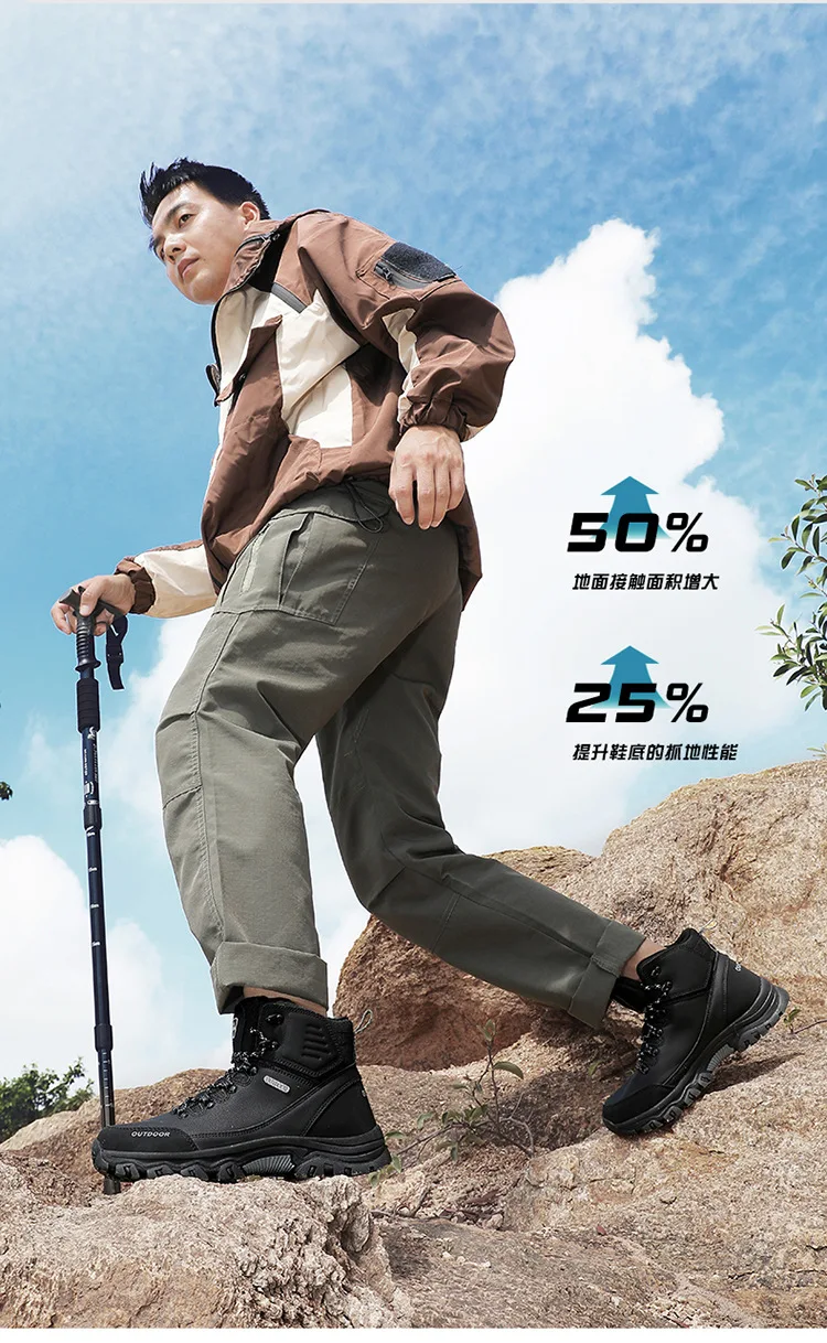 Stivali da neve da uomo di grandi dimensioni in inverno, scarpe da uomo in cotone spesso caldo e peluche, scarpe da trekking per sport all’aria aperta