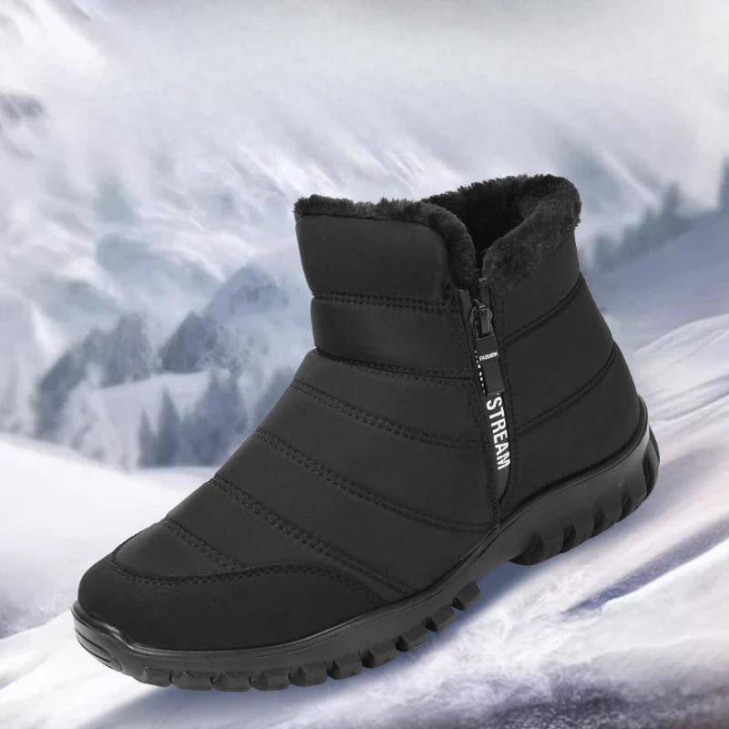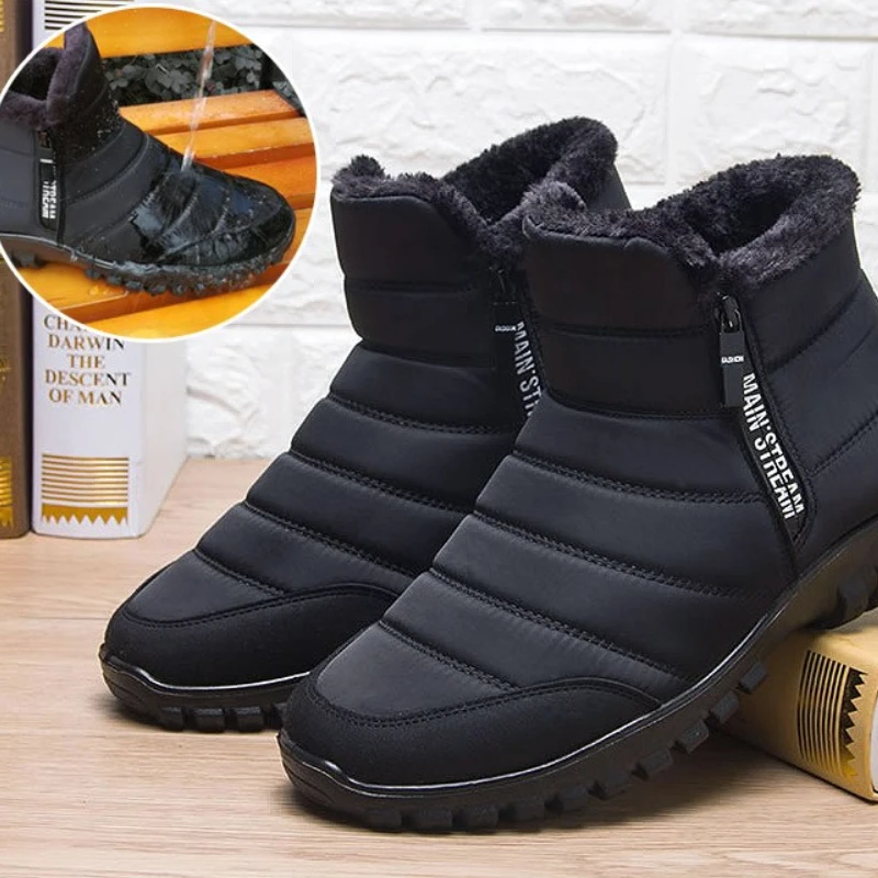 Stivaletti da neve impermeabili con cerniera in cotone caldo da uomo, stivaletti invernali caldi e spessi in peluche, stivali da neve impermeabili