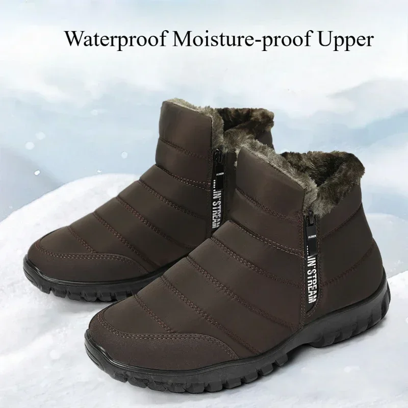Stivaletti da neve impermeabili con cerniera in cotone caldo da uomo, stivaletti invernali caldi e spessi in peluche, stivali da neve impermeabili