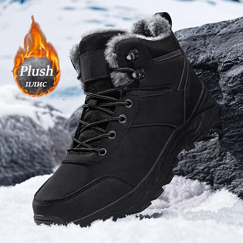 Stivali da neve da uomo per uomo Scarpe invernali casual Piattaforma Stivaletti in pelliccia calda antiscivolo Stivali da moto da trekking all’aperto da combattimento in peluche