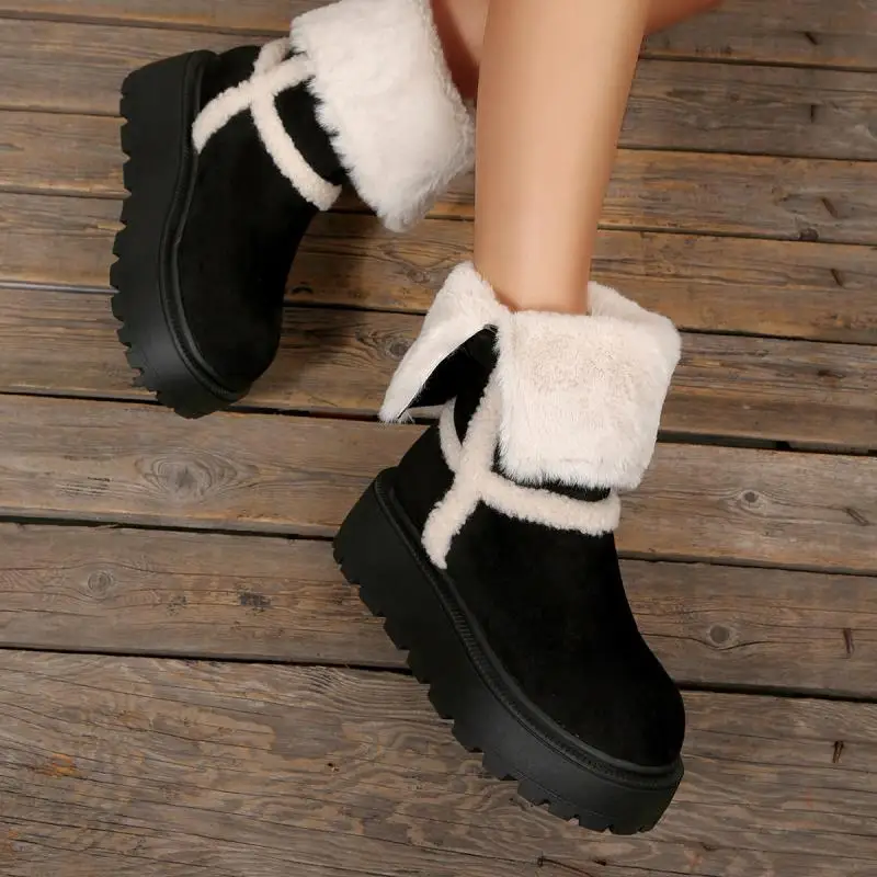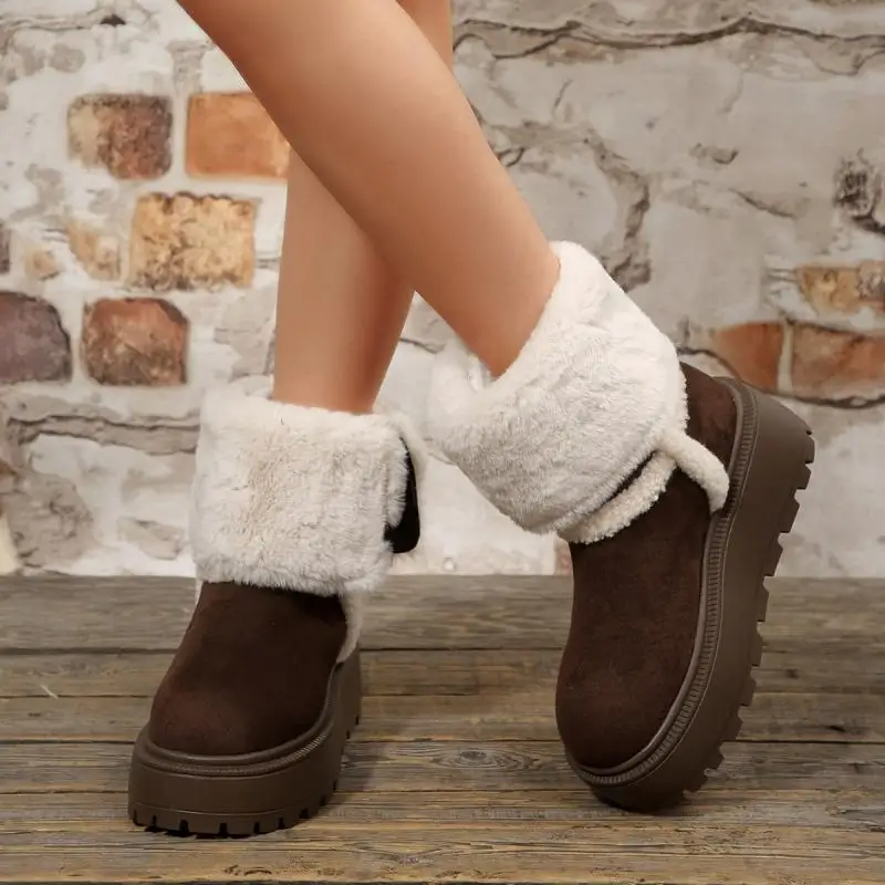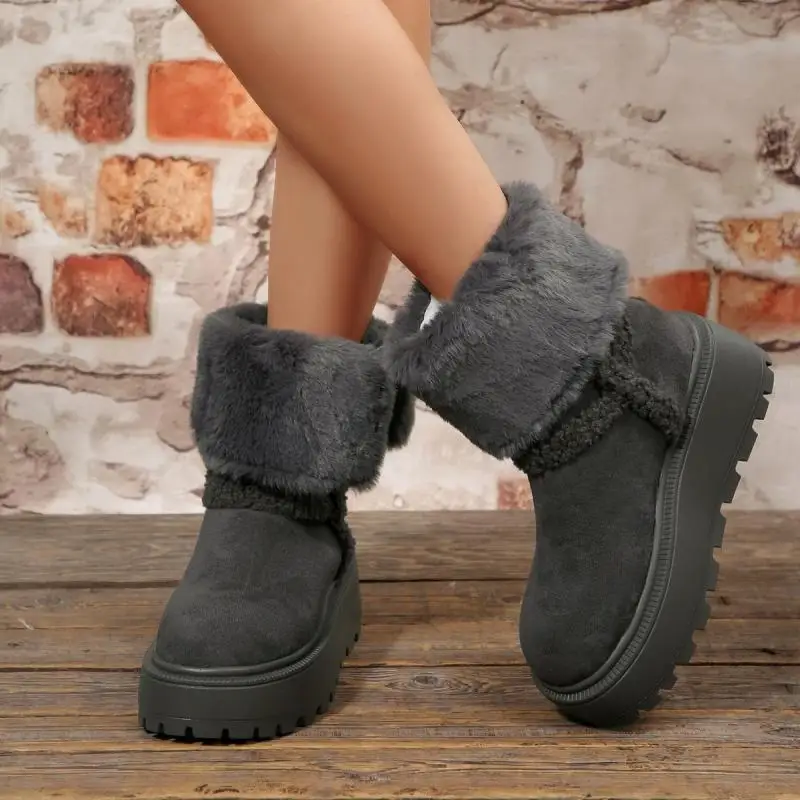 Stivali da donna Stivaletti da donna con pelliccia Scarpe invernali Donna Tacchi bassi Stivali invernali da neve Impermeabili Botas Mujer Calzature invernali