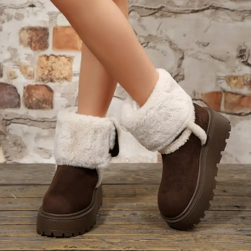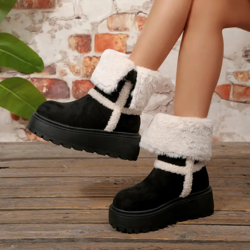 Stivali da donna Stivaletti da donna con pelliccia Scarpe invernali Donna Tacchi bassi Stivali invernali da neve Impermeabili Botas Mujer Calzature invernali