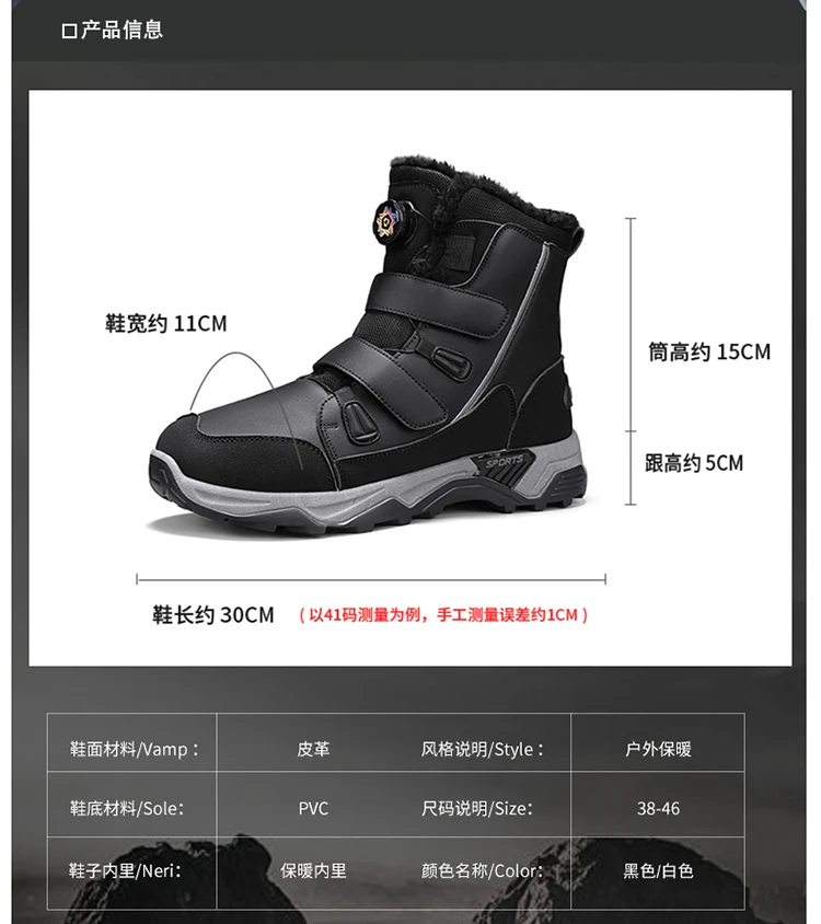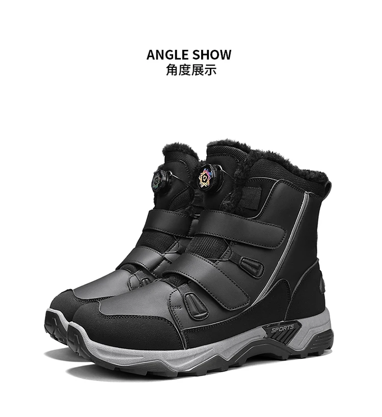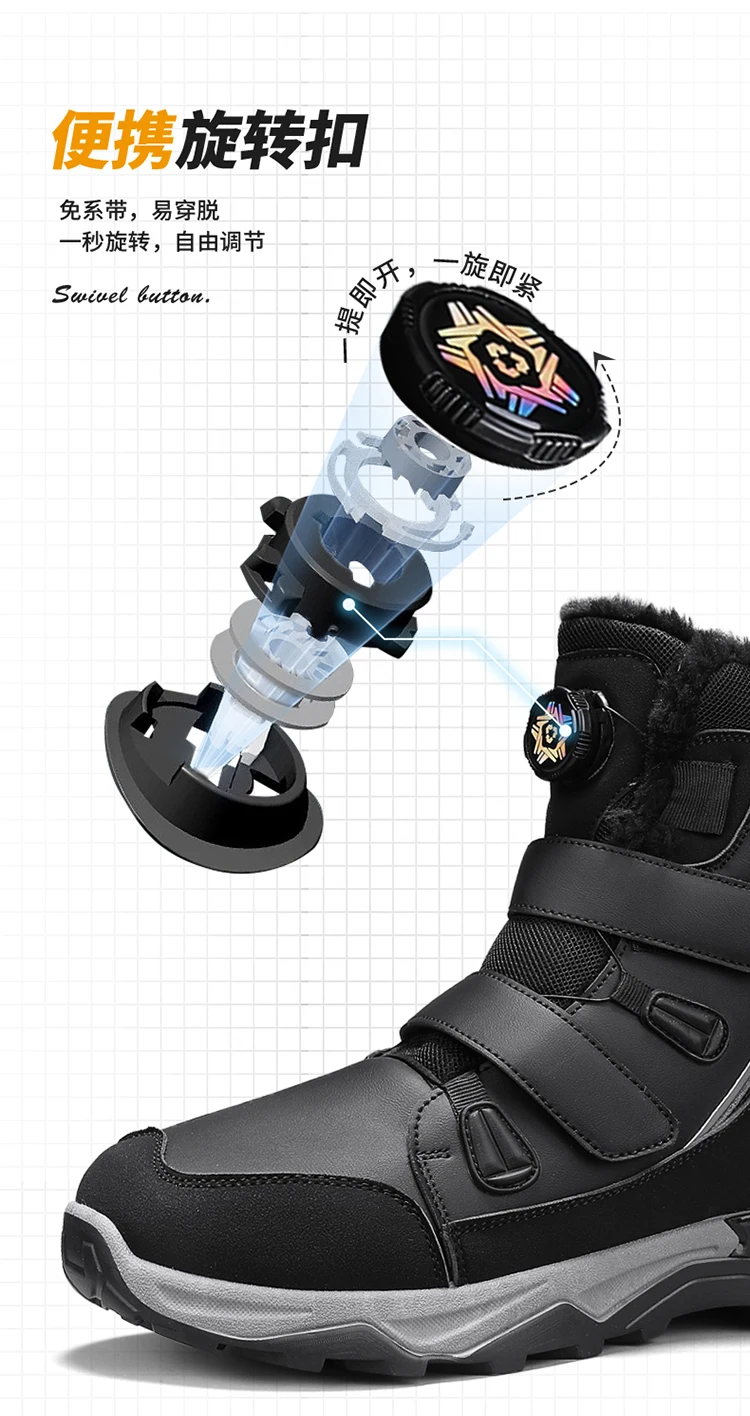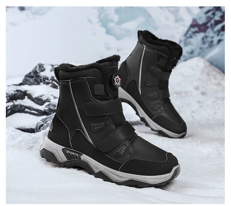 Stivali da neve invernali da uomo con calore in pile, scarpe di cotone grandi, pelliccia e pelle integrati, stivali di cotone alti estremamente freddi