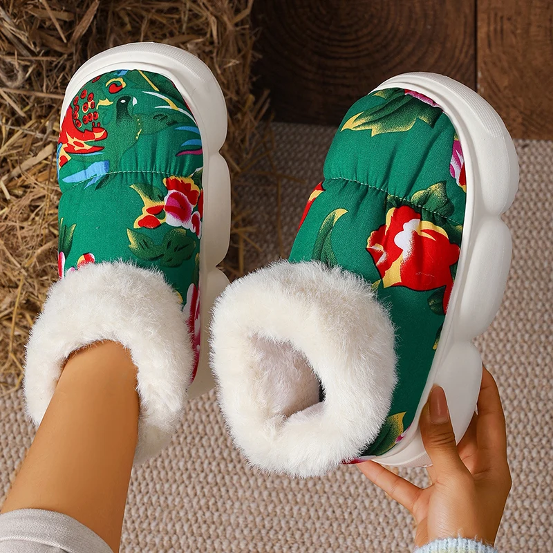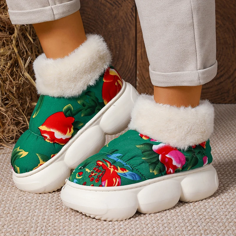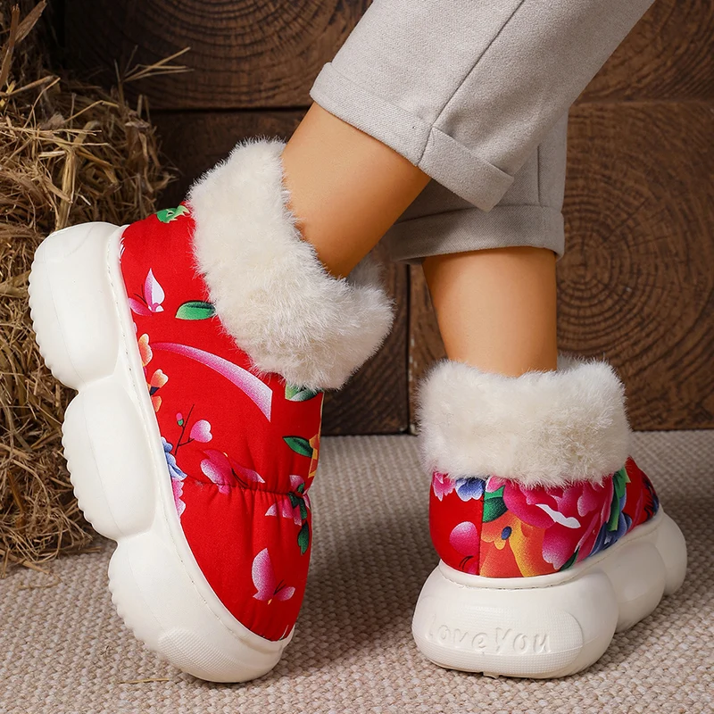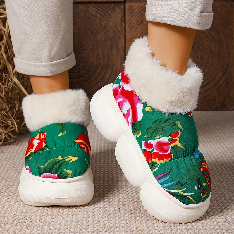 Stivali da neve stampati con fondo spesso per donna 2025 Scarpe invernali calde in cotone felpato Donna Comfort Chunky Platform Caviglia Botas Mujer