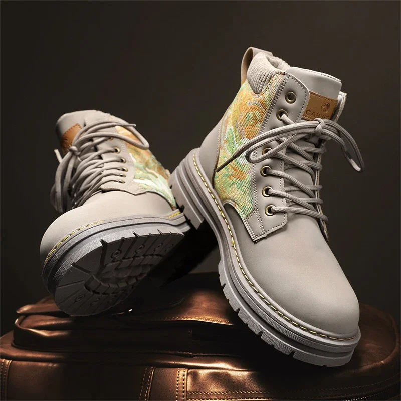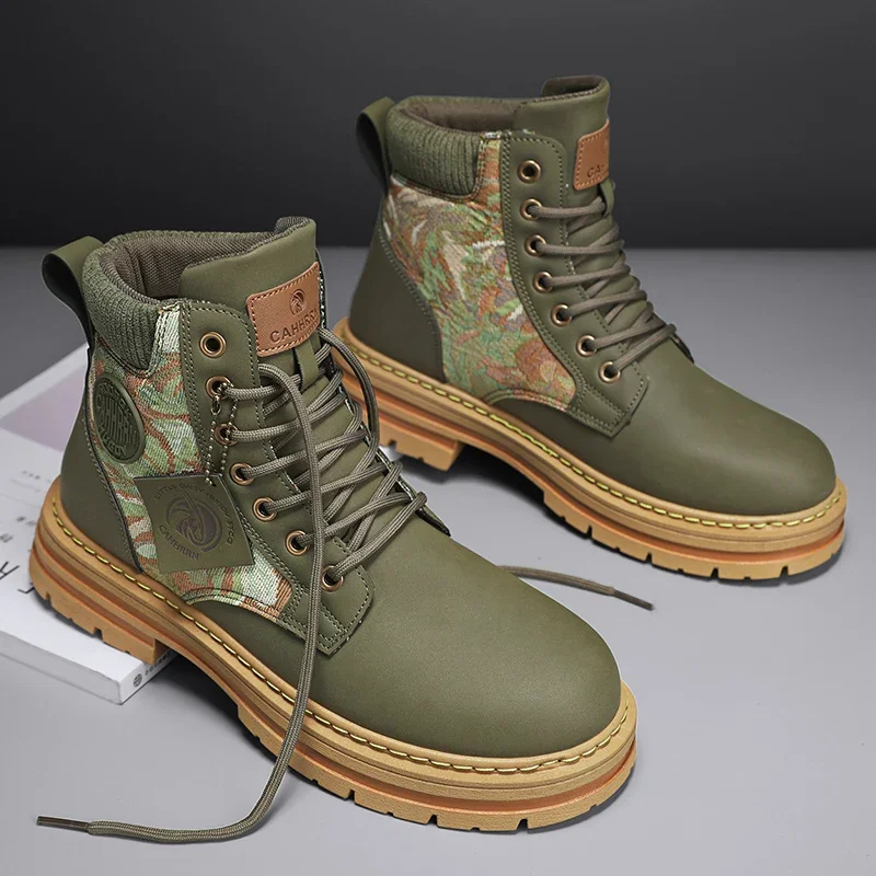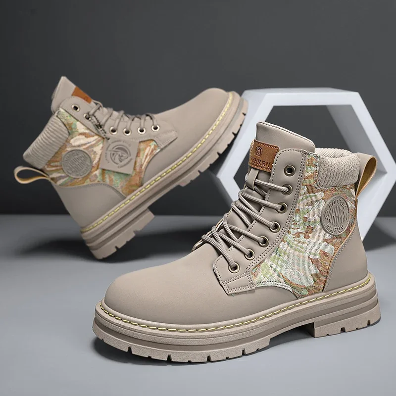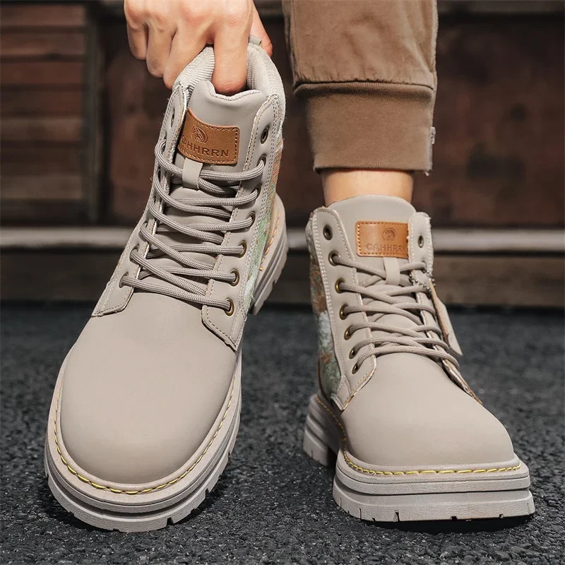 Stivali da passeggio in pelle da uomo Stivali da esterno Marchi di lusso Stivaletti da uomo Autunno Inverno Nuove scarpe casual alte dal design classico