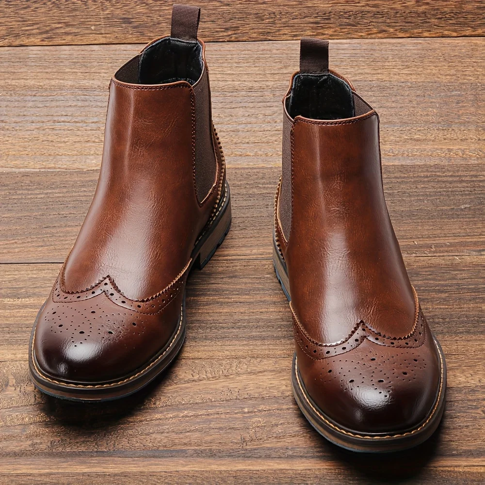Stivali da uomo Chelsea Brogue alla moda Stivali classici in pelle stile americano
