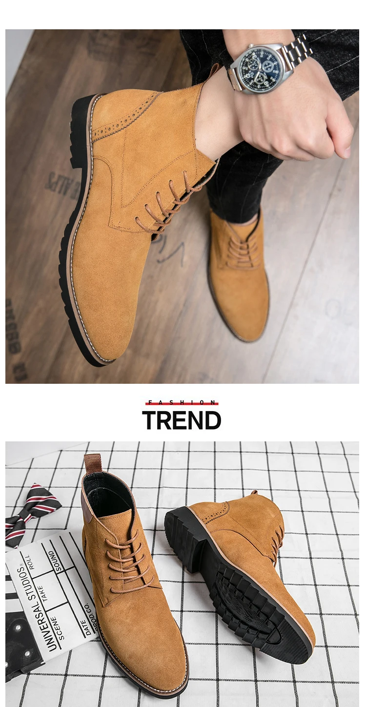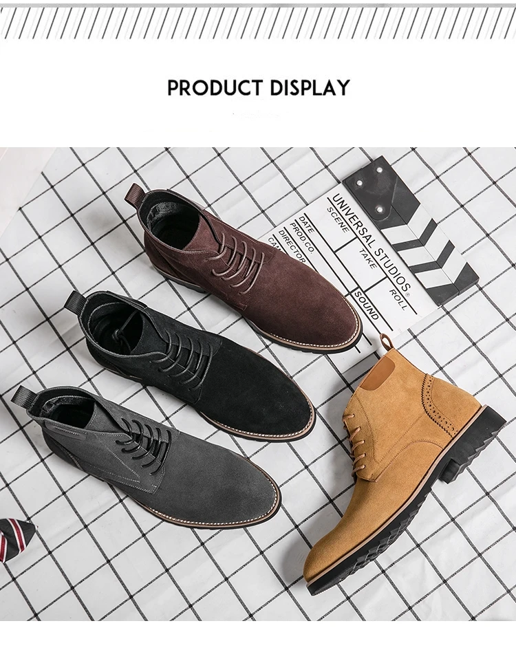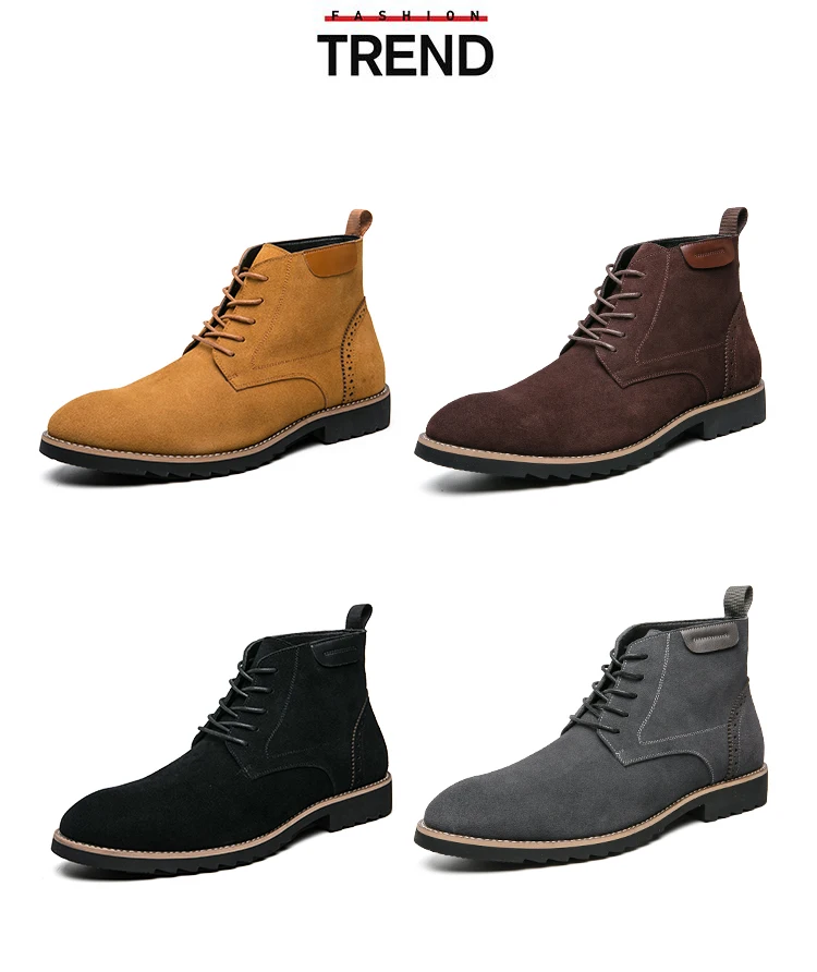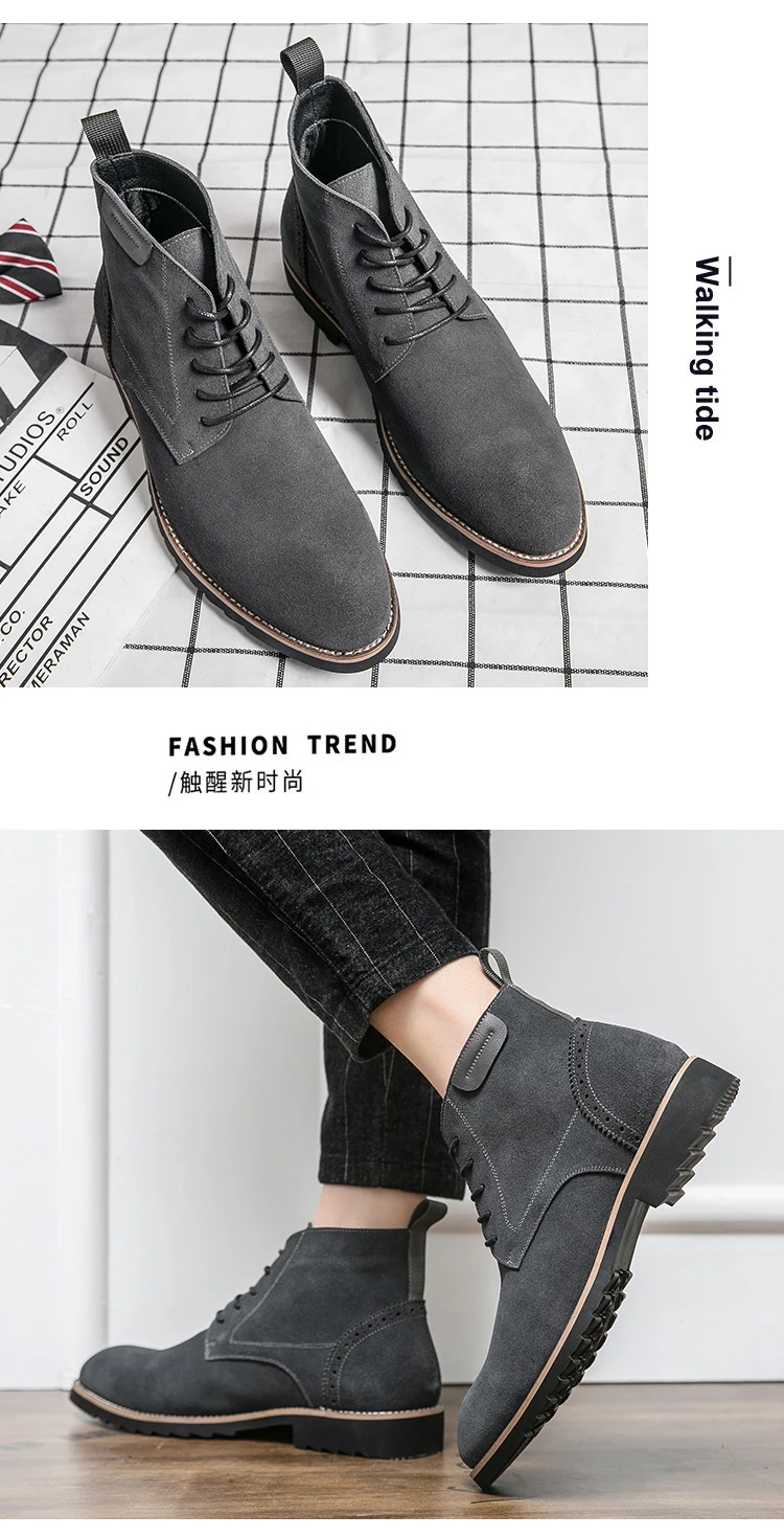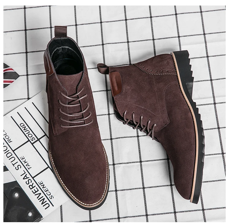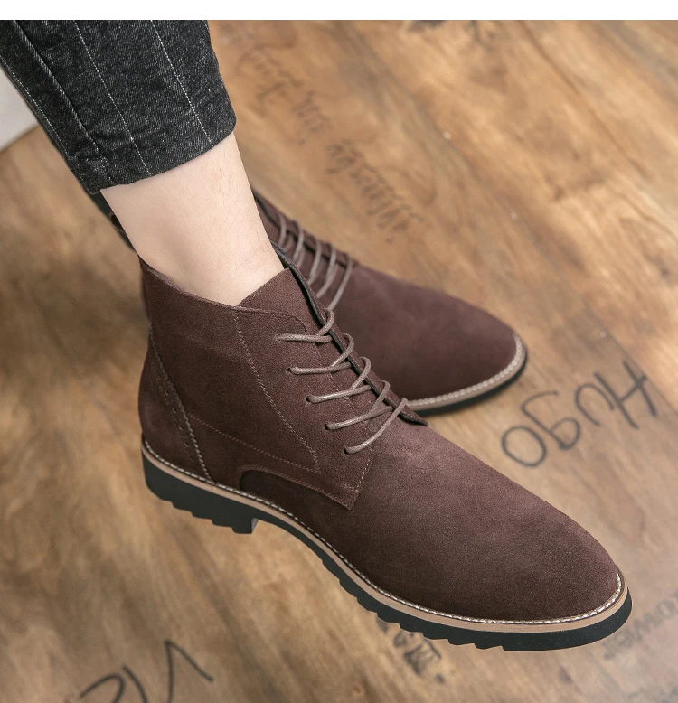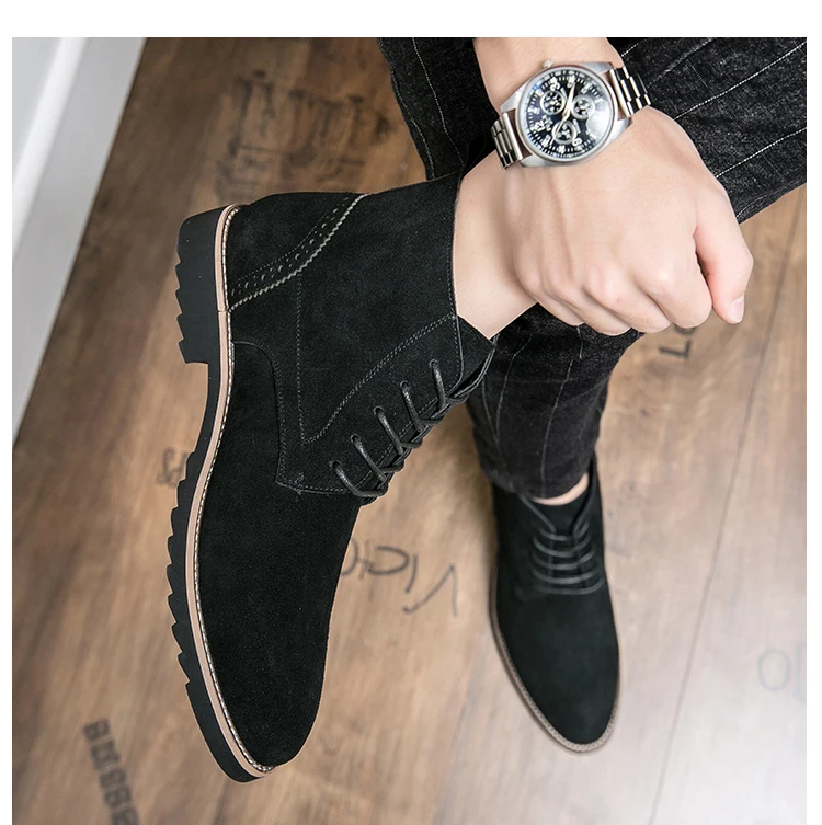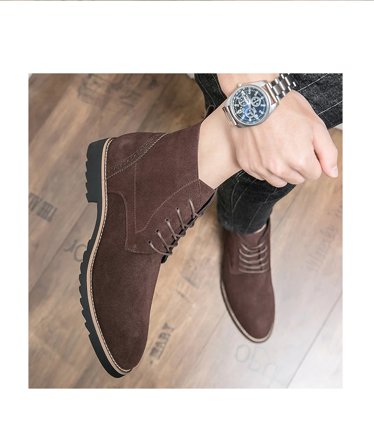 Stivali da uomo in pelle scamosciata di mucca di marca da uomo d’affari casual scarpe alte in pelle autunno inverno con pelliccia moda oxford per uomo