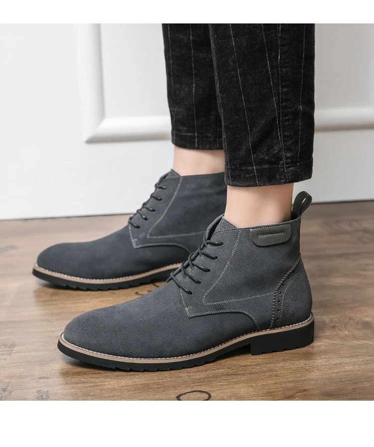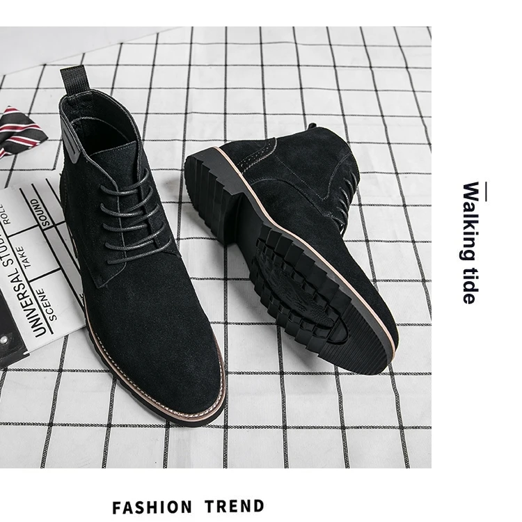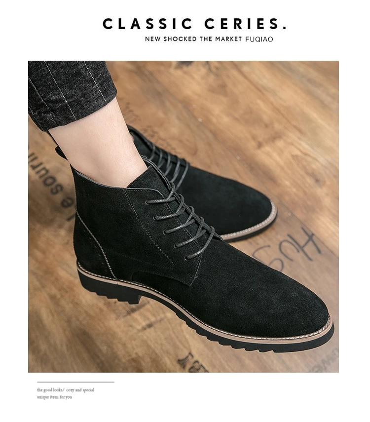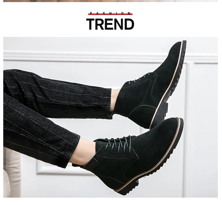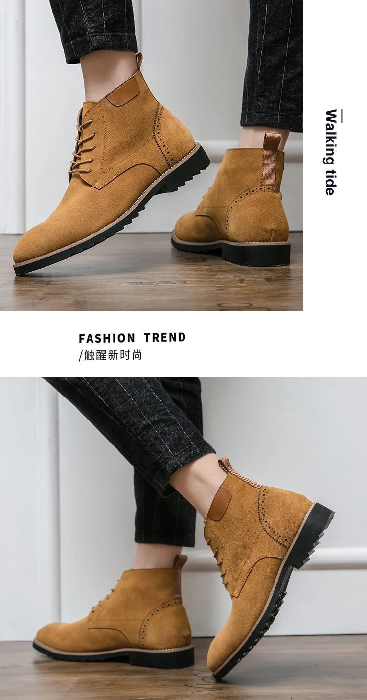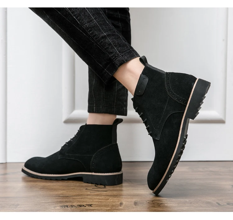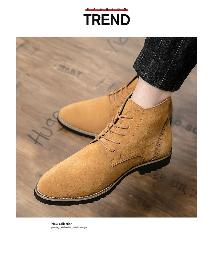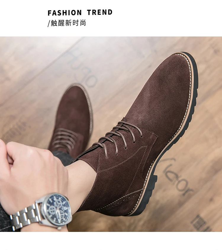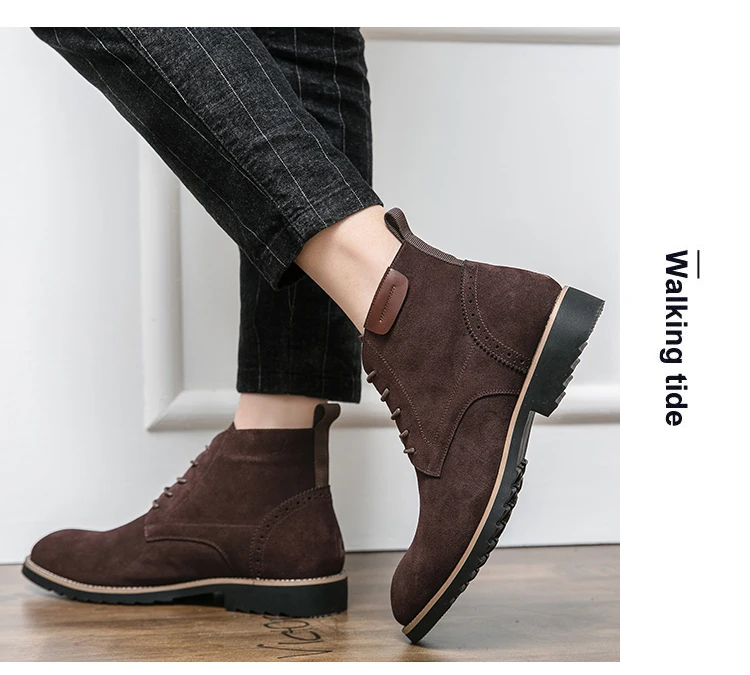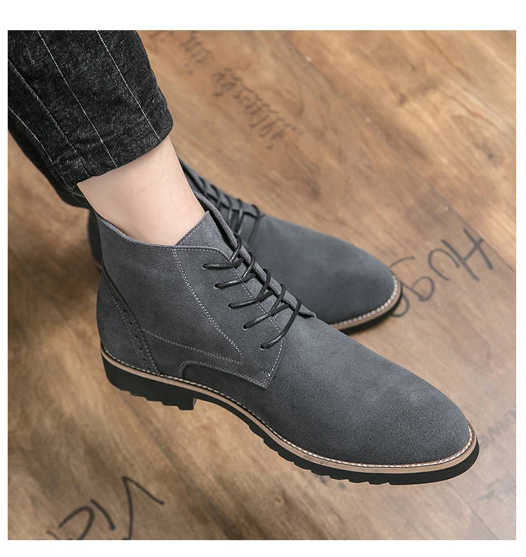 Stivali da uomo in pelle scamosciata di mucca di marca da uomo d’affari casual scarpe alte in pelle autunno inverno con pelliccia moda oxford per uomo