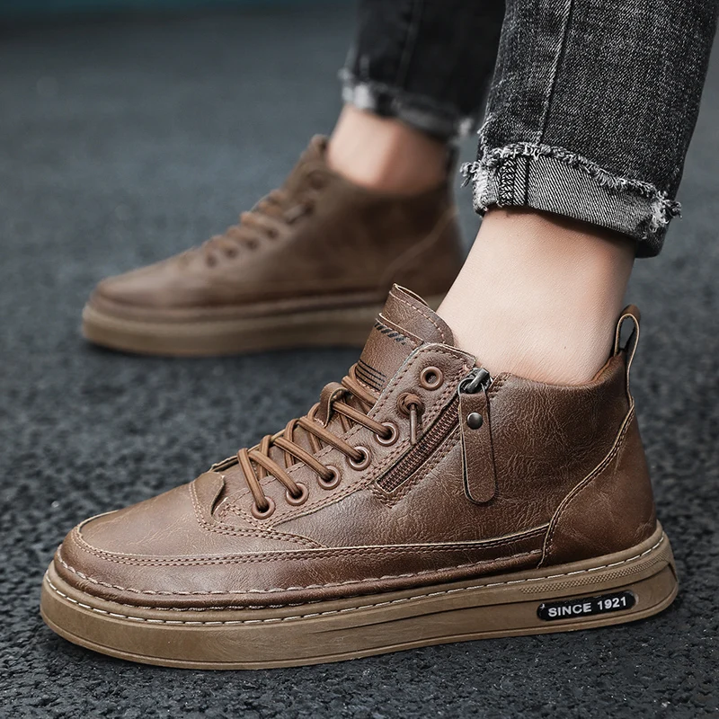 Stivali da uomo quattro stivali da lavoro stagionali per esterni stivali casual maschili moda suola morbida comodi stivali sportivi in pelle scarpa da uomo