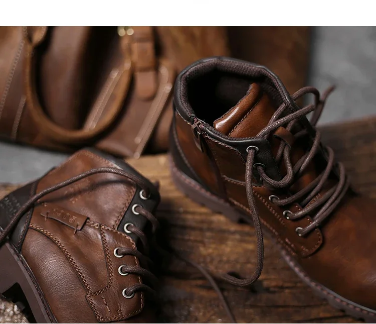 Stivali da uomo vintage 2025 Nuove scarpe autunno inverno Stivaletti da uomo in pelle con cerniera laterale da uomo di alta qualità Zapatos Para Hombre maschio