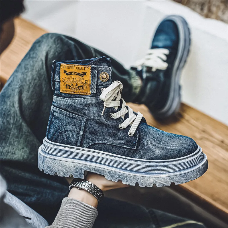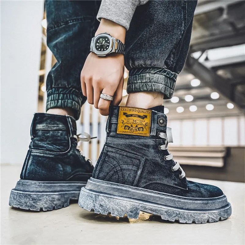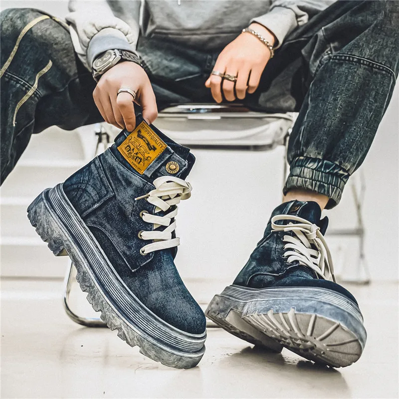Stivali di jeans blu retrò Stivali da cowboy occidentali da uomo Designer originale Stivali sporchi sporchi da uomo Stivaletti di tela Botas Hombre 2025