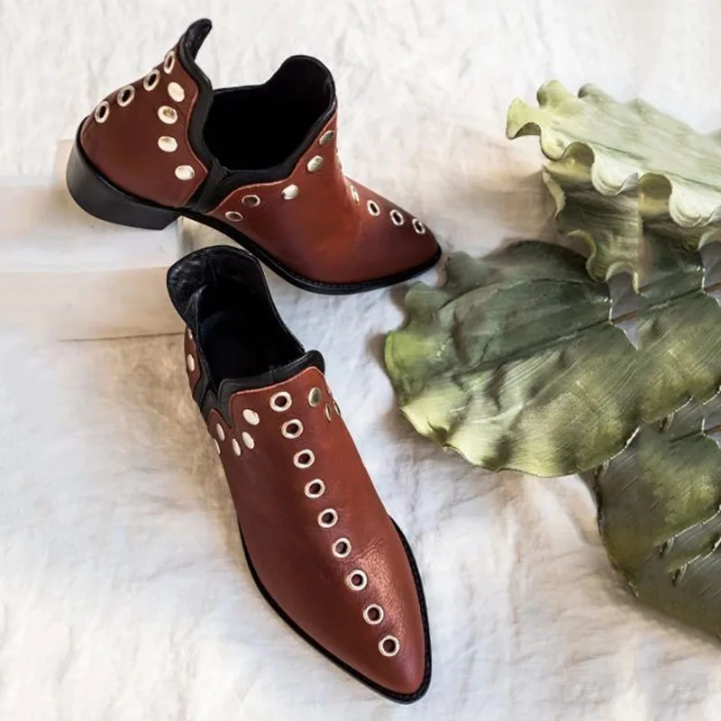 Stivali Donna Nuovo 2025 Calzature invernali Scarpe femminili Designer di lusso Rivetti Caviglia bassa Donna a punta Autunno Moda Gomma Basic Sq