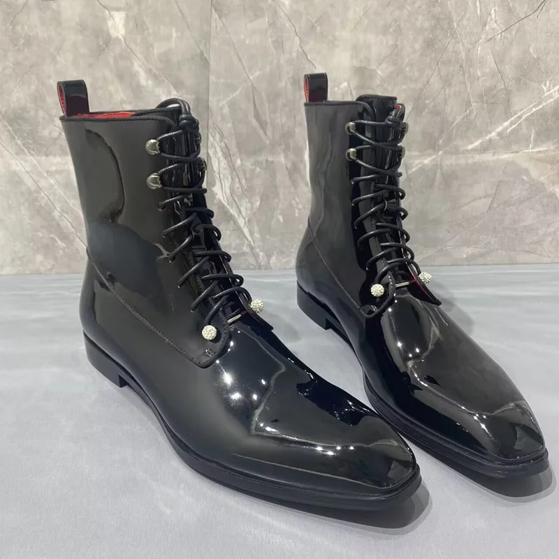 Stivali in pelle verniciata nera stile britannico Scarpe da uomo Stivaletti stringati moda di lusso Scarpe eleganti da uomo Stivali da uomo autunno inverno