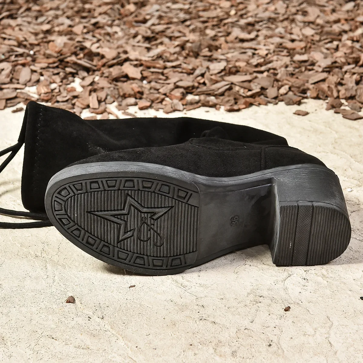 • Design con tacco spesso:Caratterizzati da un robusto tacco spesso, questi stivali offrono supporto e stabilità eccellenti, migliorando la tua sicurezza ad ogni passo.