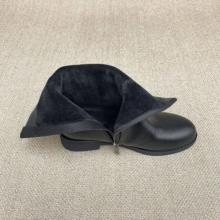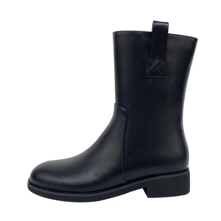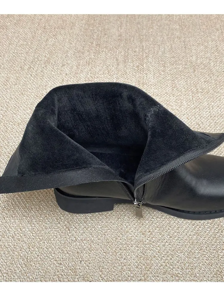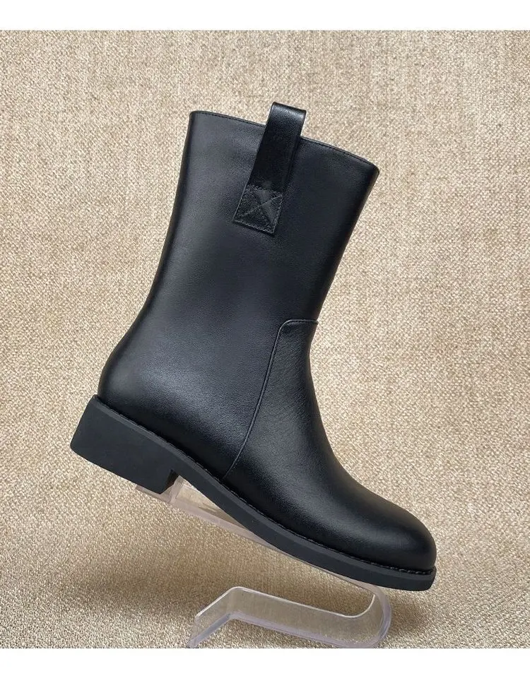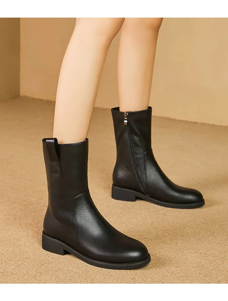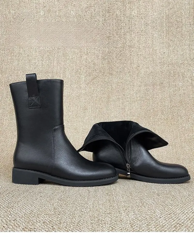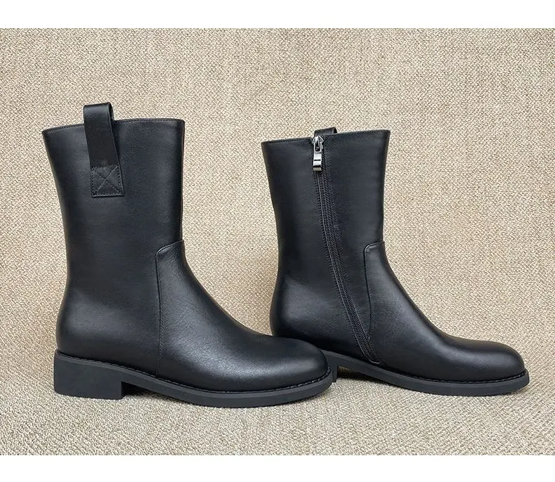 Stivali moda a metà polpaccio2025Nuovi stivali invernali in pelle con suola morbida stile francese con tacco grosso, comodi e versatili, foderati in pile