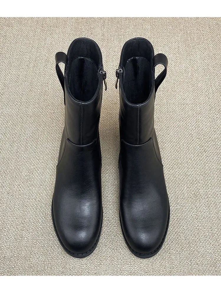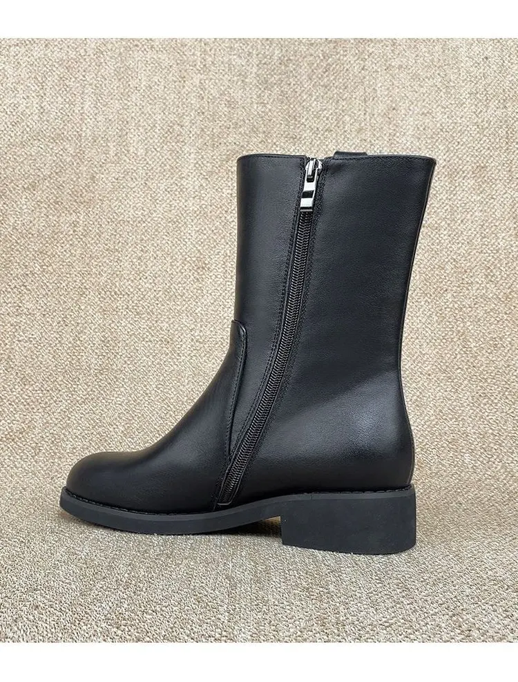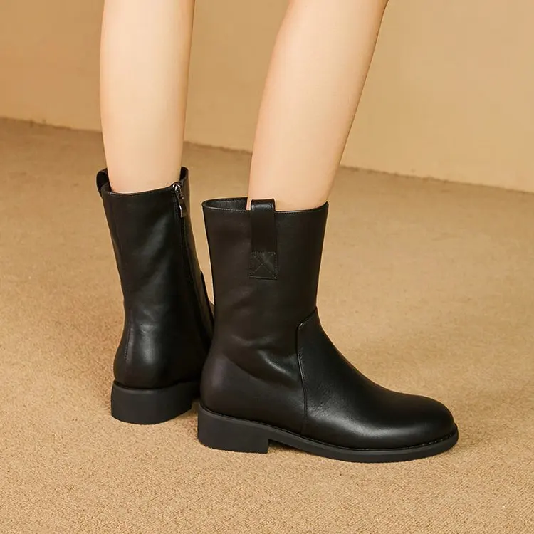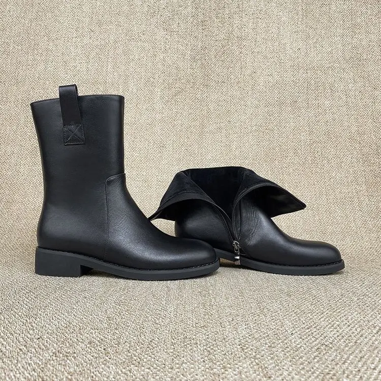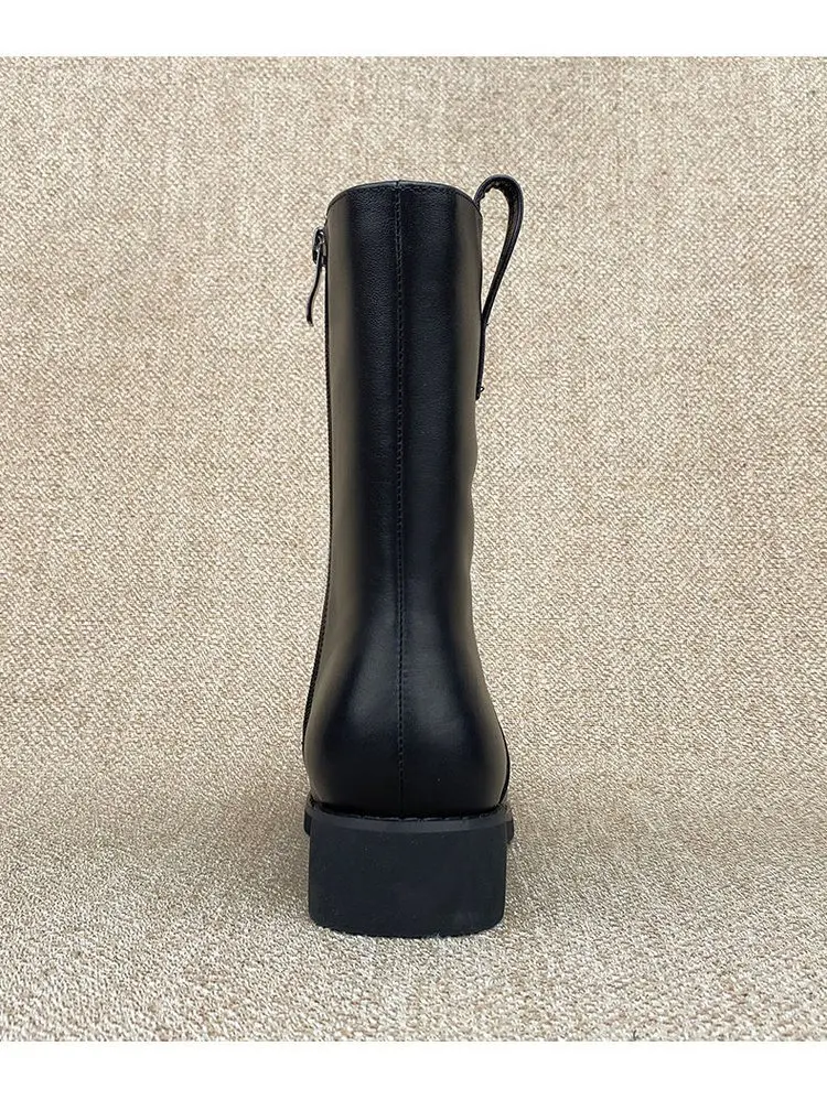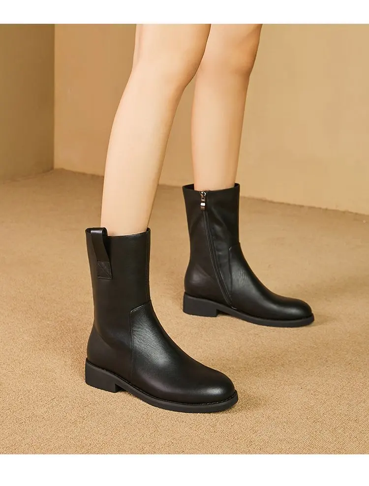 Stivali moda a metà polpaccio2025Nuovi stivali invernali in pelle con suola morbida stile francese con tacco grosso, comodi e versatili, foderati in pile