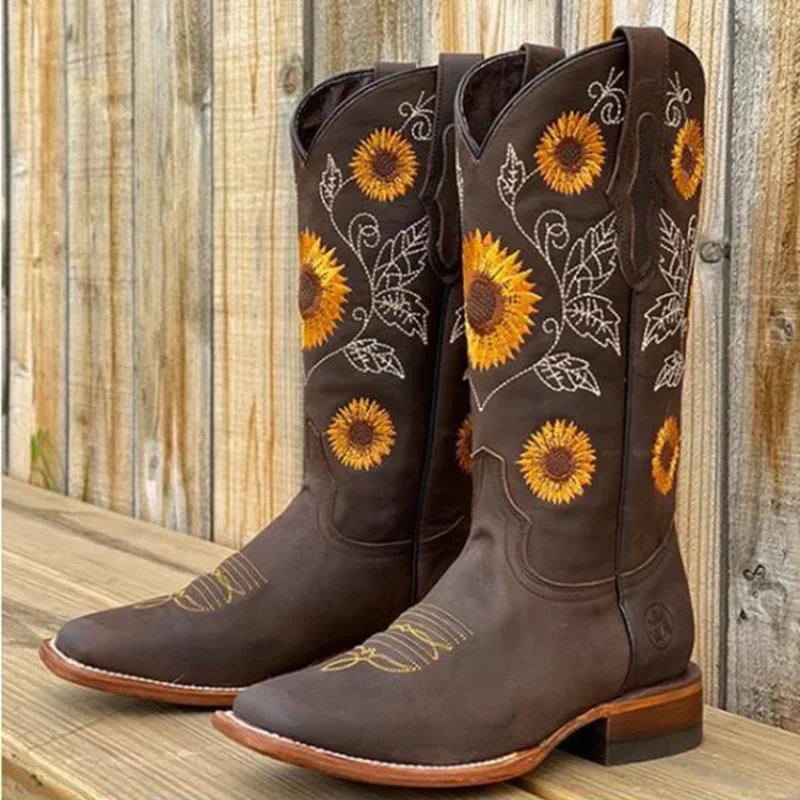 Stivali moda donna invernali scarpe da passeggio Comfort all’aperto ricamo stivali in pelle marrone tubo alto profondo scarpe Casual femminili Botas
