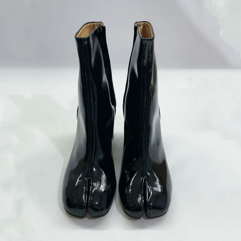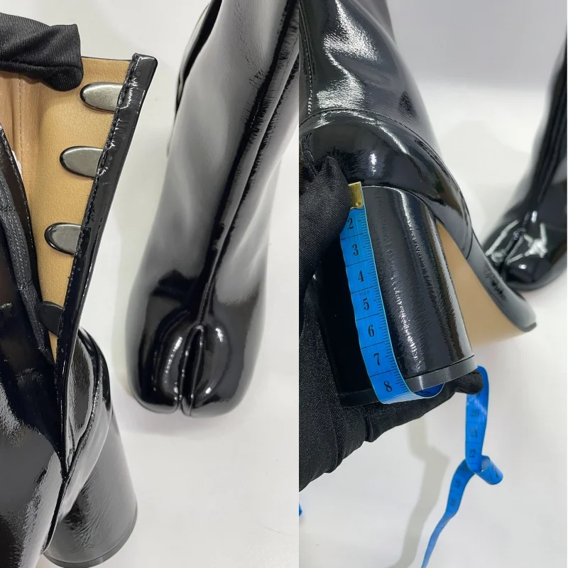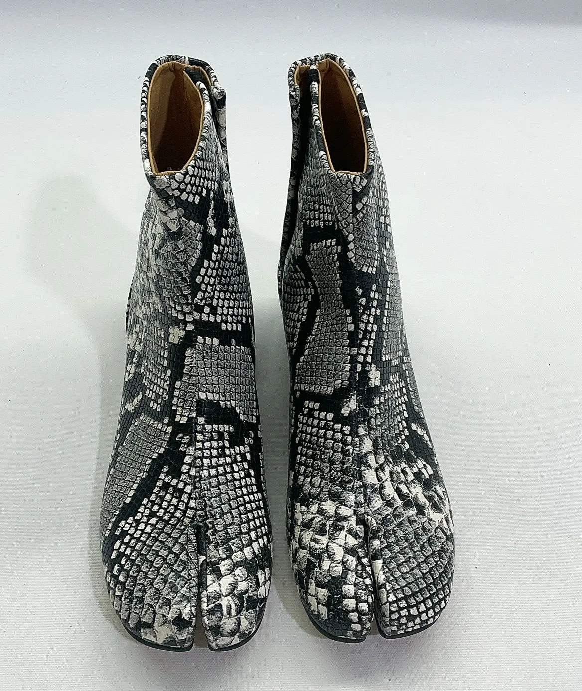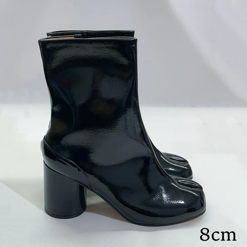 Stivali neri Tabi con punta divisa per donna Design di marca scarpe alla caviglia con stampa serpente invernale décolleté con tacco alto grosso da donna Botas Mujer