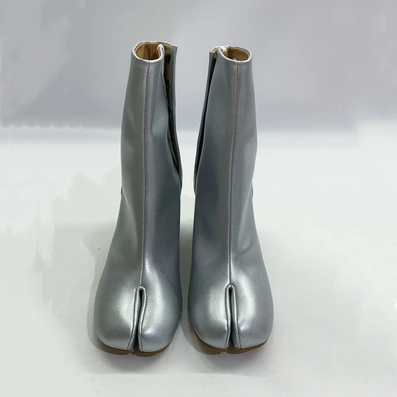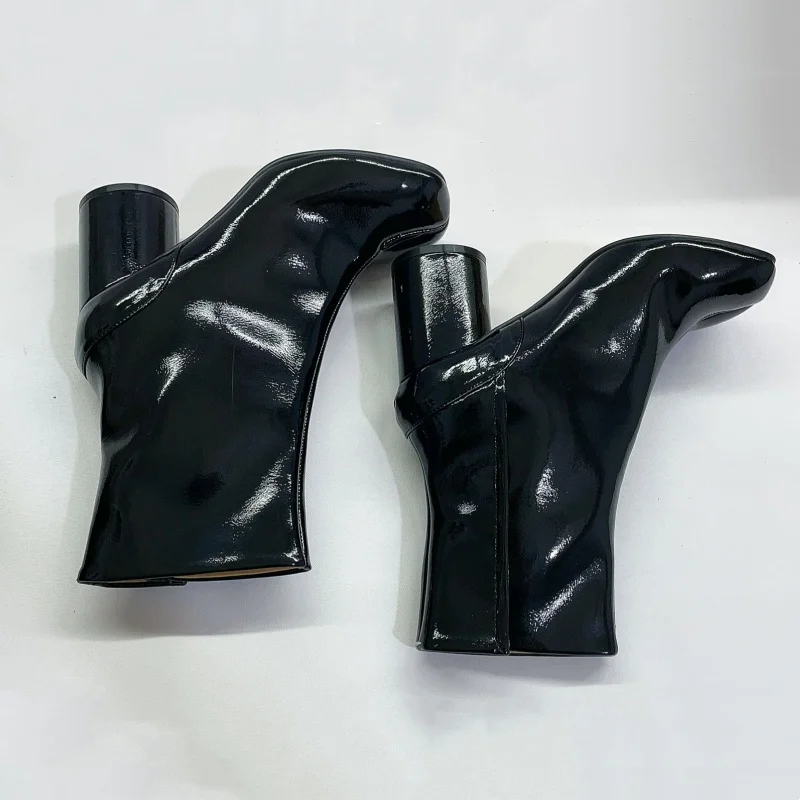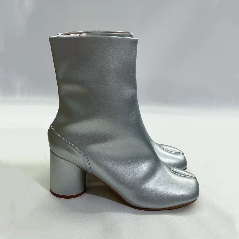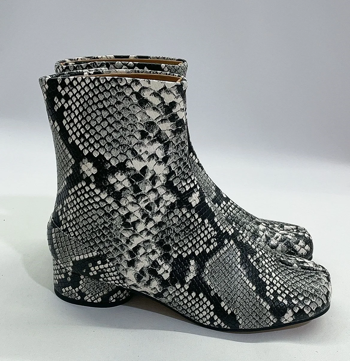 Stivali neri Tabi con punta divisa per donna Design di marca scarpe alla caviglia con stampa serpente invernale décolleté con tacco alto grosso da donna Botas Mujer