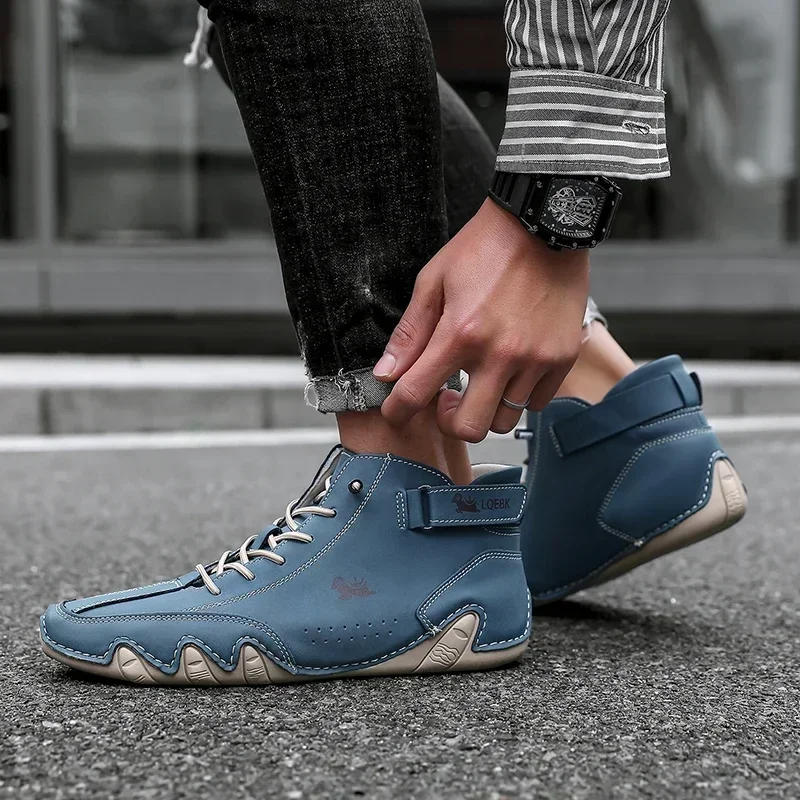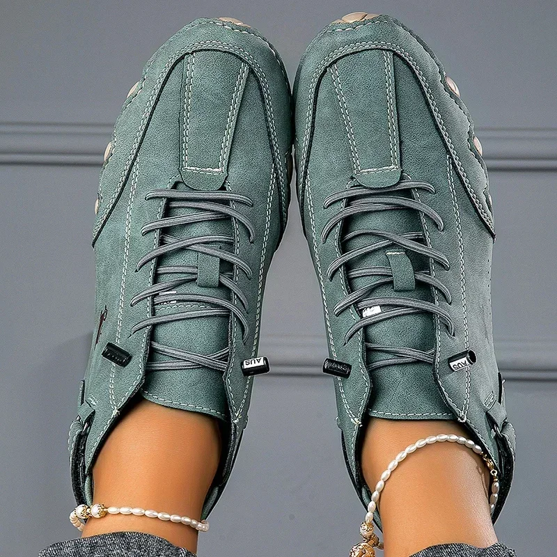 Stivali nudi da donna in pelle Design alla moda con lacci Scarpe comode con suola morbida Attività quotidiane Scarpe alte da viaggio per passeggiate