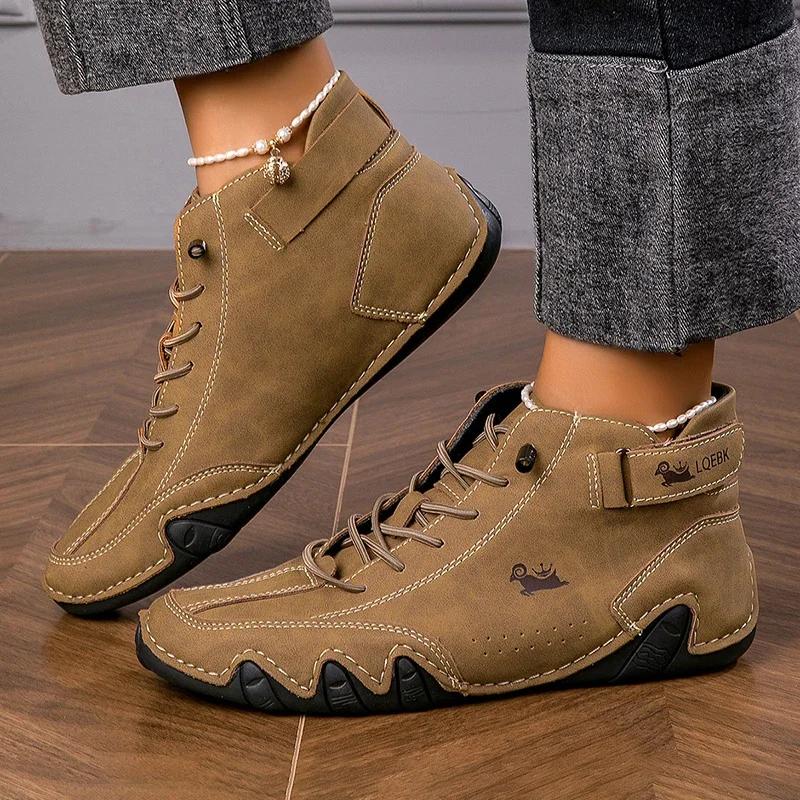 Stivali nudi da donna in pelle Design alla moda con lacci Scarpe comode con suola morbida Attività quotidiane Scarpe alte da viaggio per passeggiate