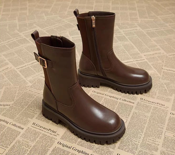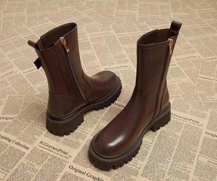 Stivali semi alti da donna Punta tonda Chelsea Scarpe da donna a metà polpaccio Tacco medio Calzature marroni Primavera Autunno Saldi Gotico Demi-stagione 1Stivali semi alti da donna Punta tonda Chelsea Scarpe da donna a metà polpaccio Tacco medio Calzature marroni Primavera Autunno Saldi Gotico Demi-stagione