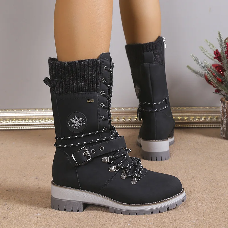 Stivali sfocati da donna in tinta unita, stivali con fodera in pile con tacco grosso e suola morbida, stivali da neve invernali antiscivolo