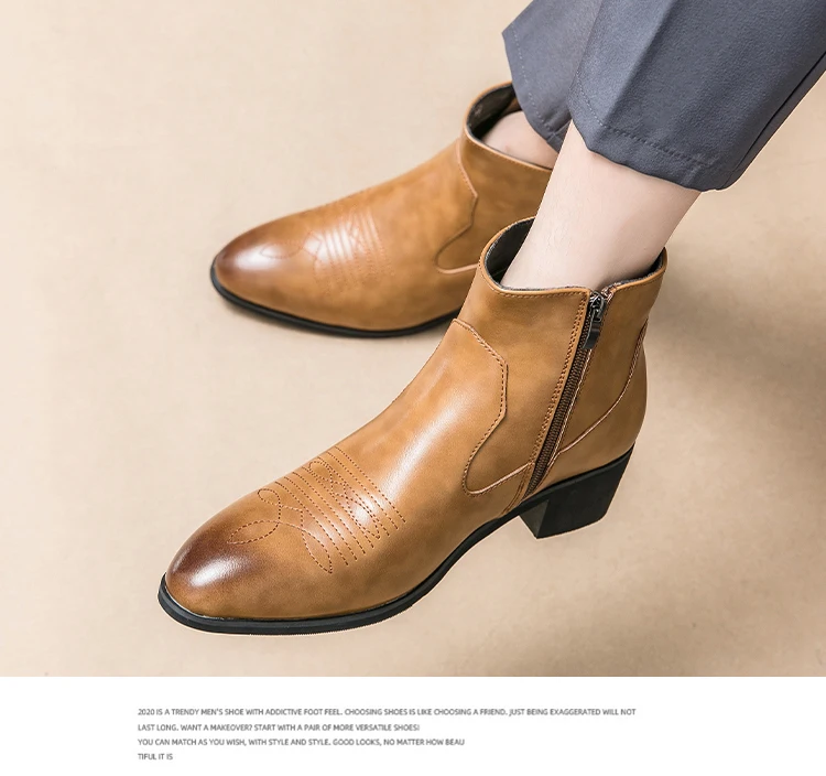 Stivali western neri da uomo Stivali Chelsea marroni da cowboy Stivali da lavoro con cerniera alla caviglia Taglia 38-46 Spedizione gratuita